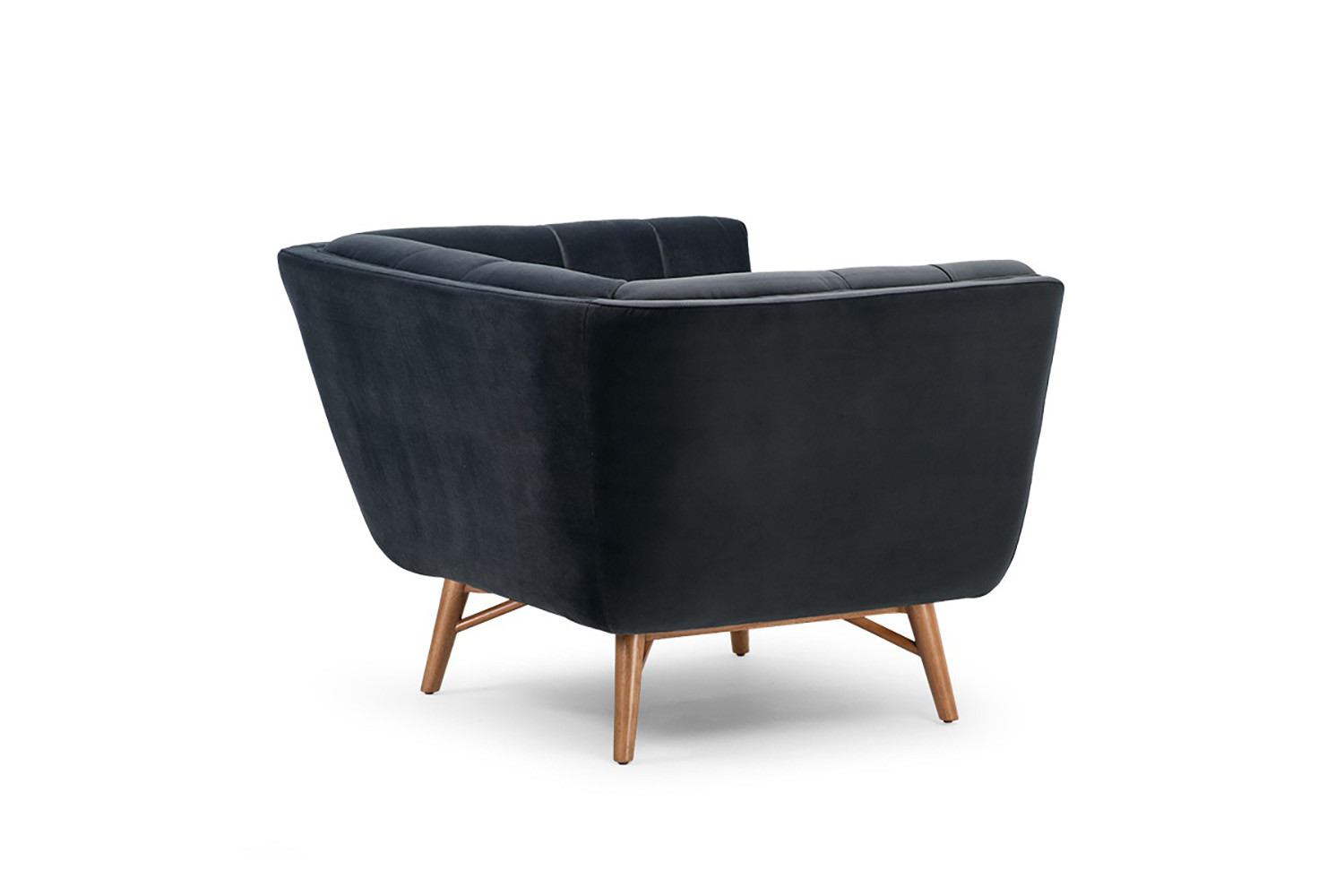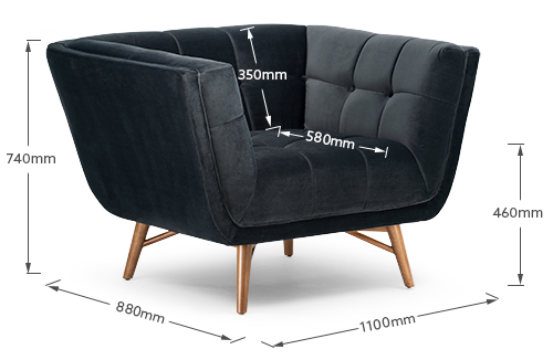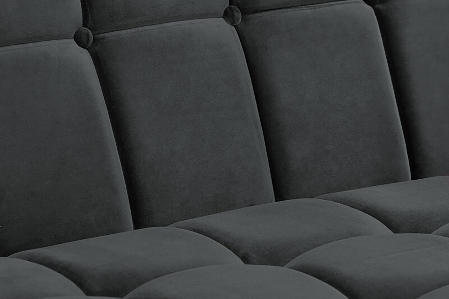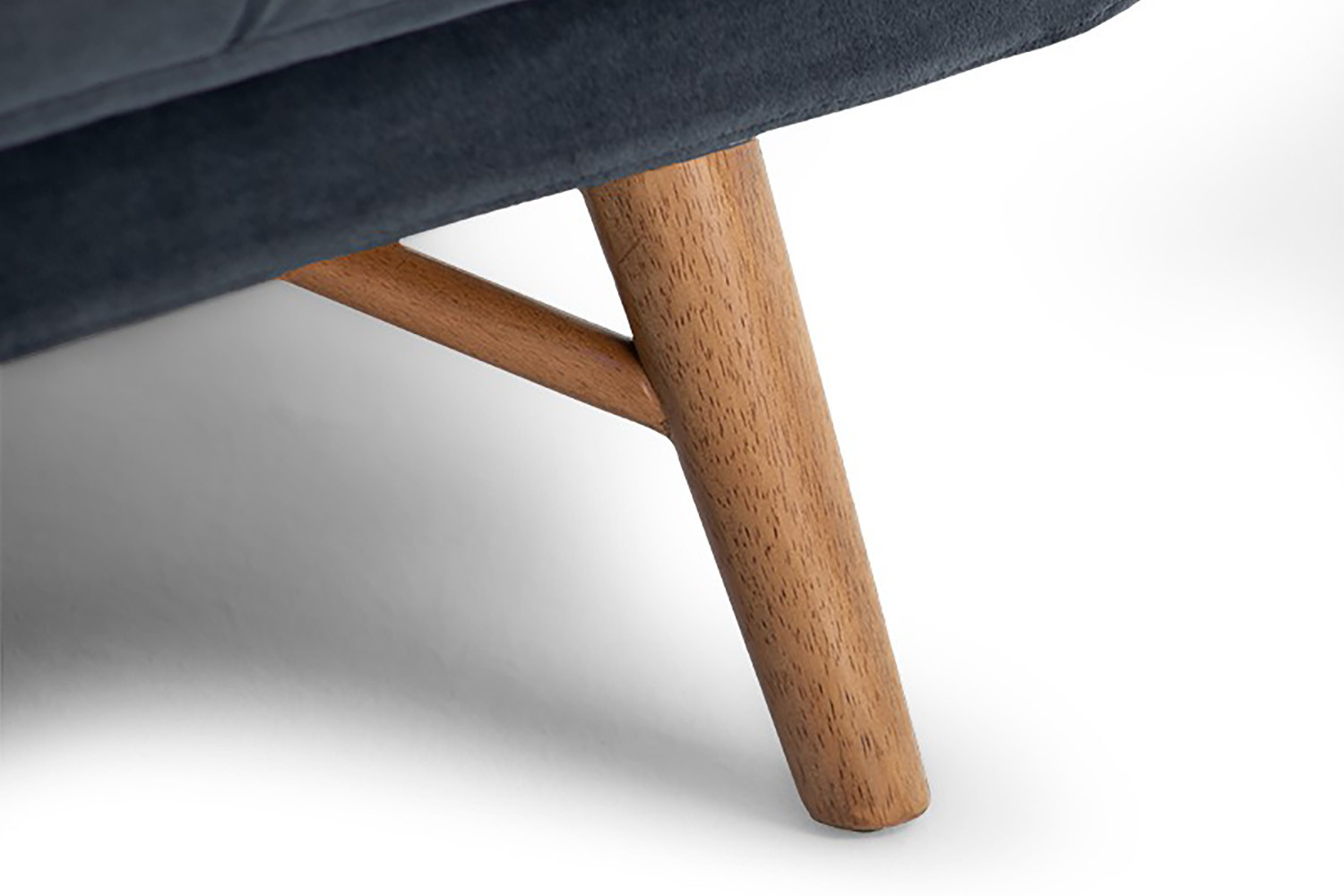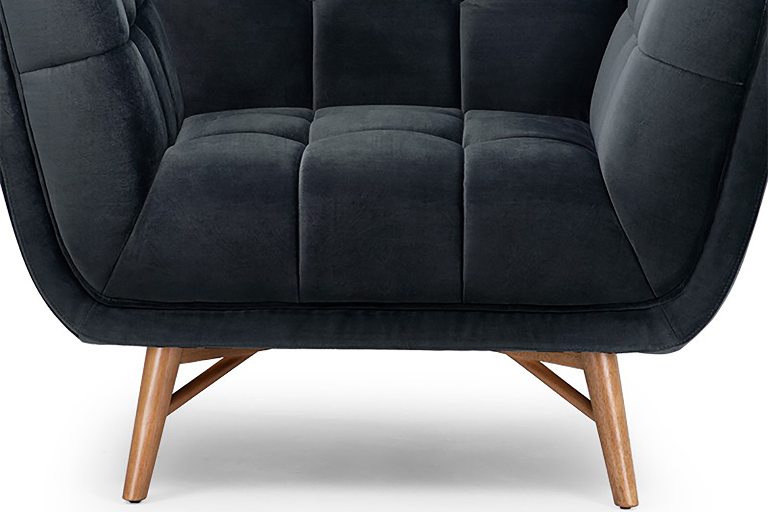 With trendy crossbeam legs constructed from Rubberwood, an eco-friendly and durable hardwood the lounge suite features a distinctive geometric grid design with subtle button detailing, finished in luxurious charcoal velvet upholstery. A stylish combination that gives this mid-century design a modern-chic flavour, adding fresh inspiration to any modern, contemporary or eclectic style space.