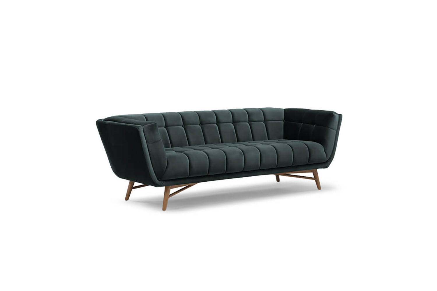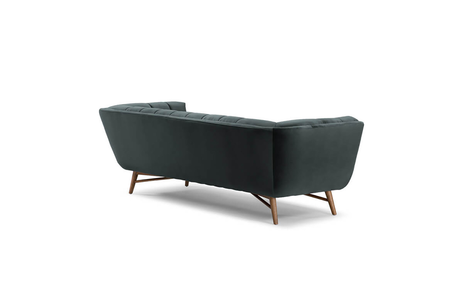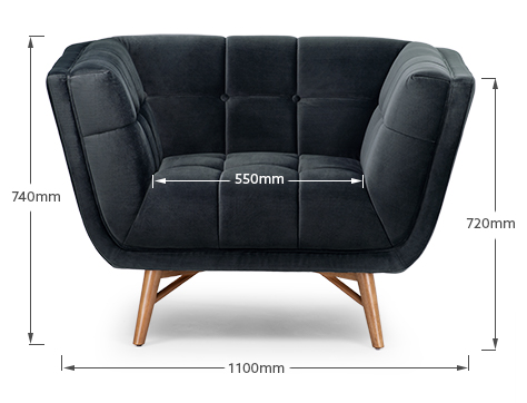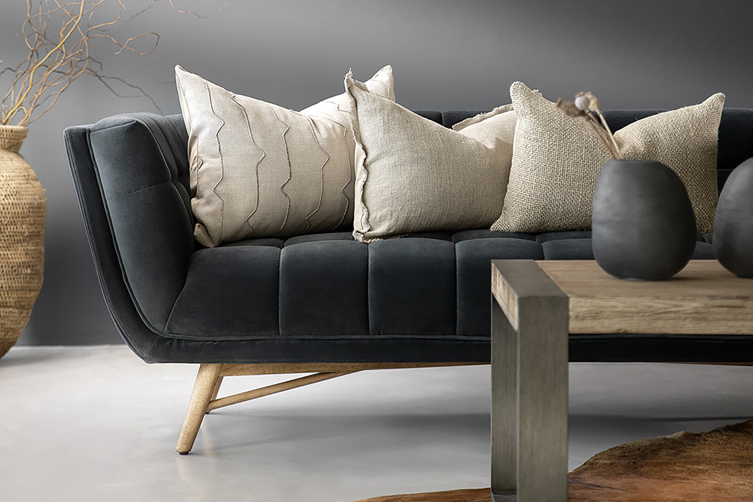 With trendy crossbeam legs constructed from Rubberwood, an eco-friendly and durable hardwood the lounge suite features a distinctive geometric grid design with subtle button detailing, finished in luxurious charcoal velvet upholstery. A stylish combination that gives this mid-century design a modern-chic flavour, adding fresh inspiration to any modern, contemporary or eclectic style space.