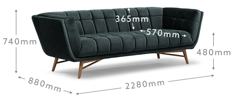 2280mm (L) x 880mm (W) x 740mm (H) | Seat Height: 480mm | Seat Depth: 570mm