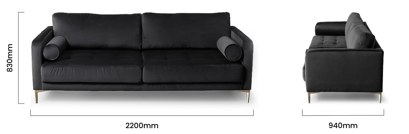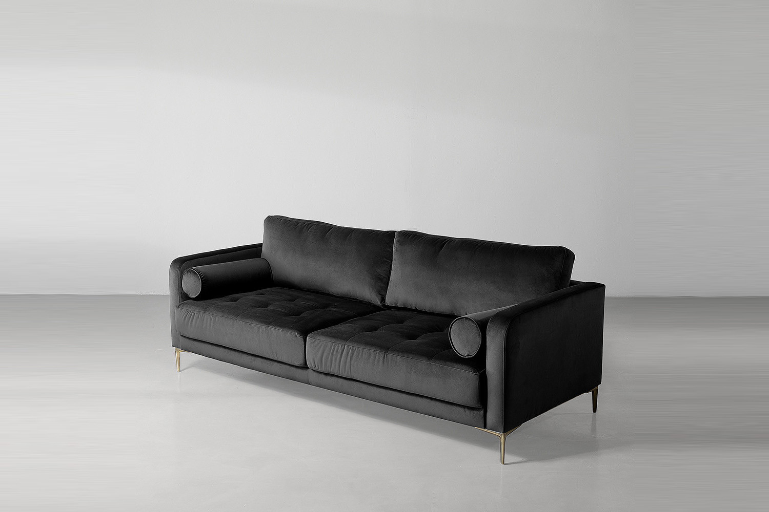 Add a rich dose of colour and texture to your living space with the Hayden Lounge Suite, upholstered in luxurious velvet. This opulent suite features an elegant modern design, finished with distinctive stitching. The blind tufted seat cushions and tapered metal legs give the Hayden a unique character and charm.