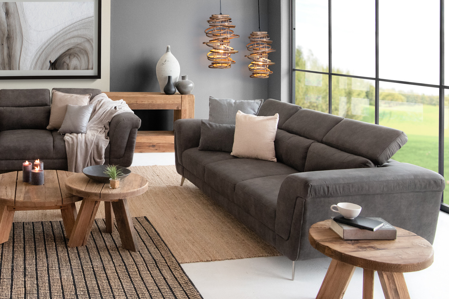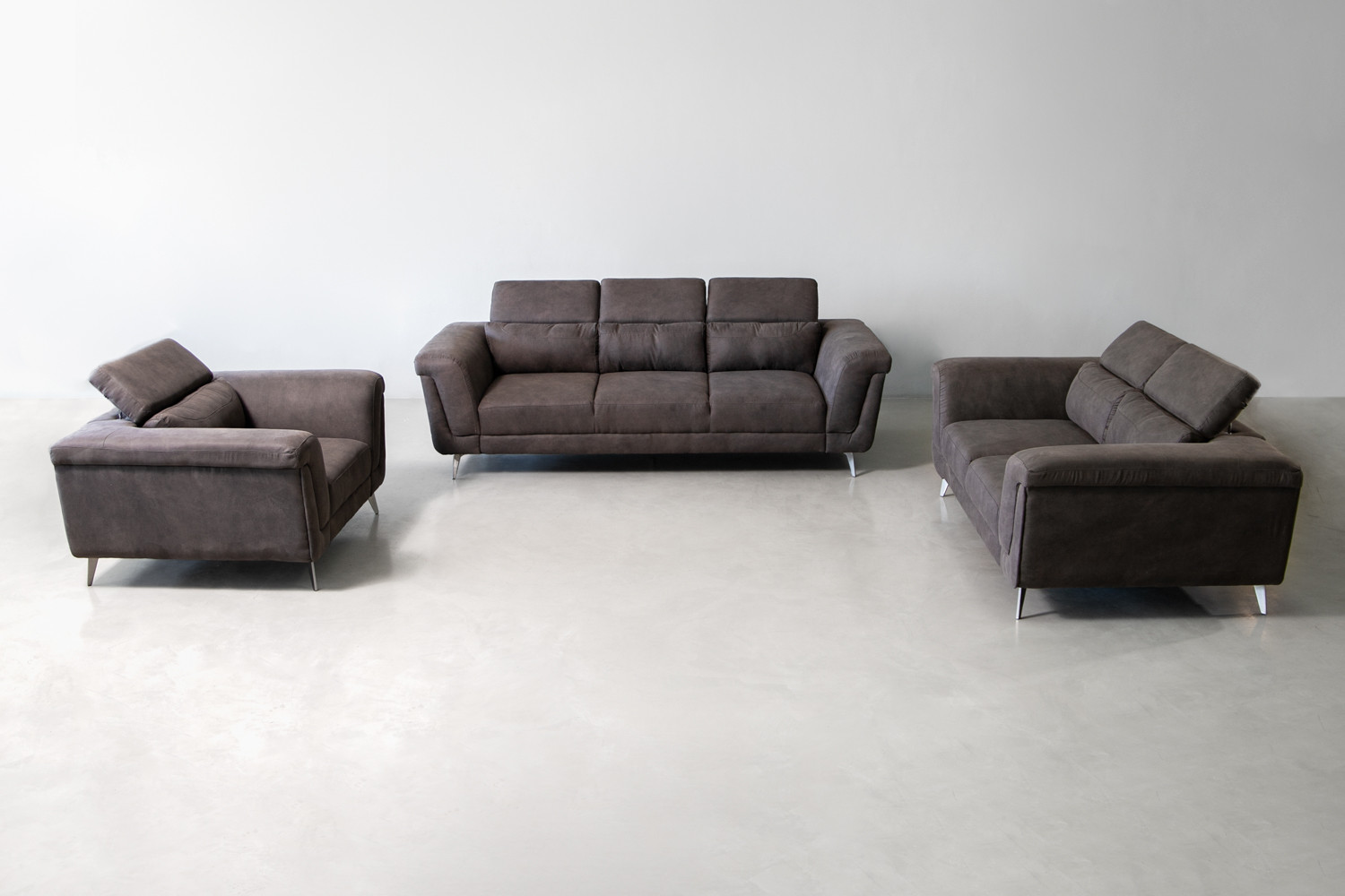 The Laurence Lounge Suite is a modern, comfortable, and generously proportioned lounge suite, complete with adjustable headrests. Ideal for hosting friends and family, the Laurence is upholstered in high-quality microfibre fabric for hours of luxurious seating.