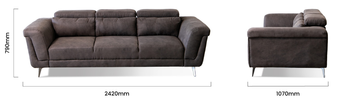 Three Seater: 2420mm (L) x 1070mm (W) x 790mm (H) (Headrests not adjusted)