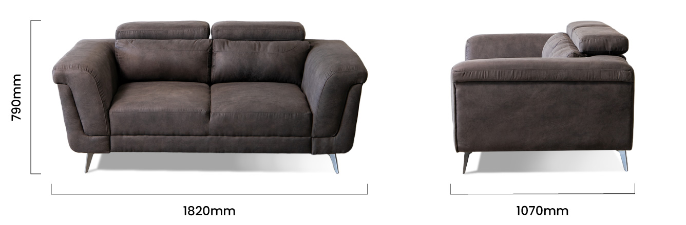 Two Seater: 1820mm (L) x 1070mm (W) x 790mm (H) (Headrests not adjusted)