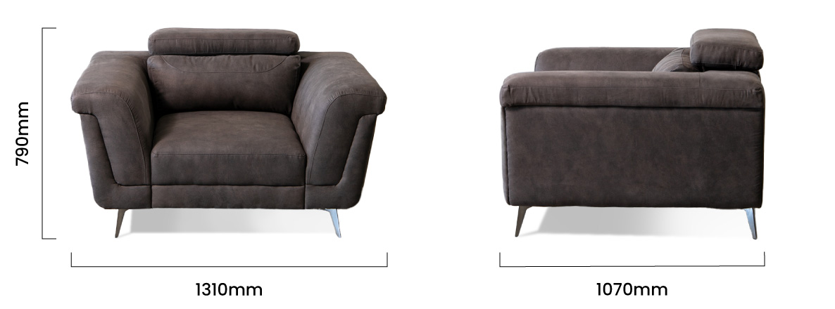 One Seater: 1310mm (L) x 1070mm (W) x 790mm (H) (Headrests not adjusted)