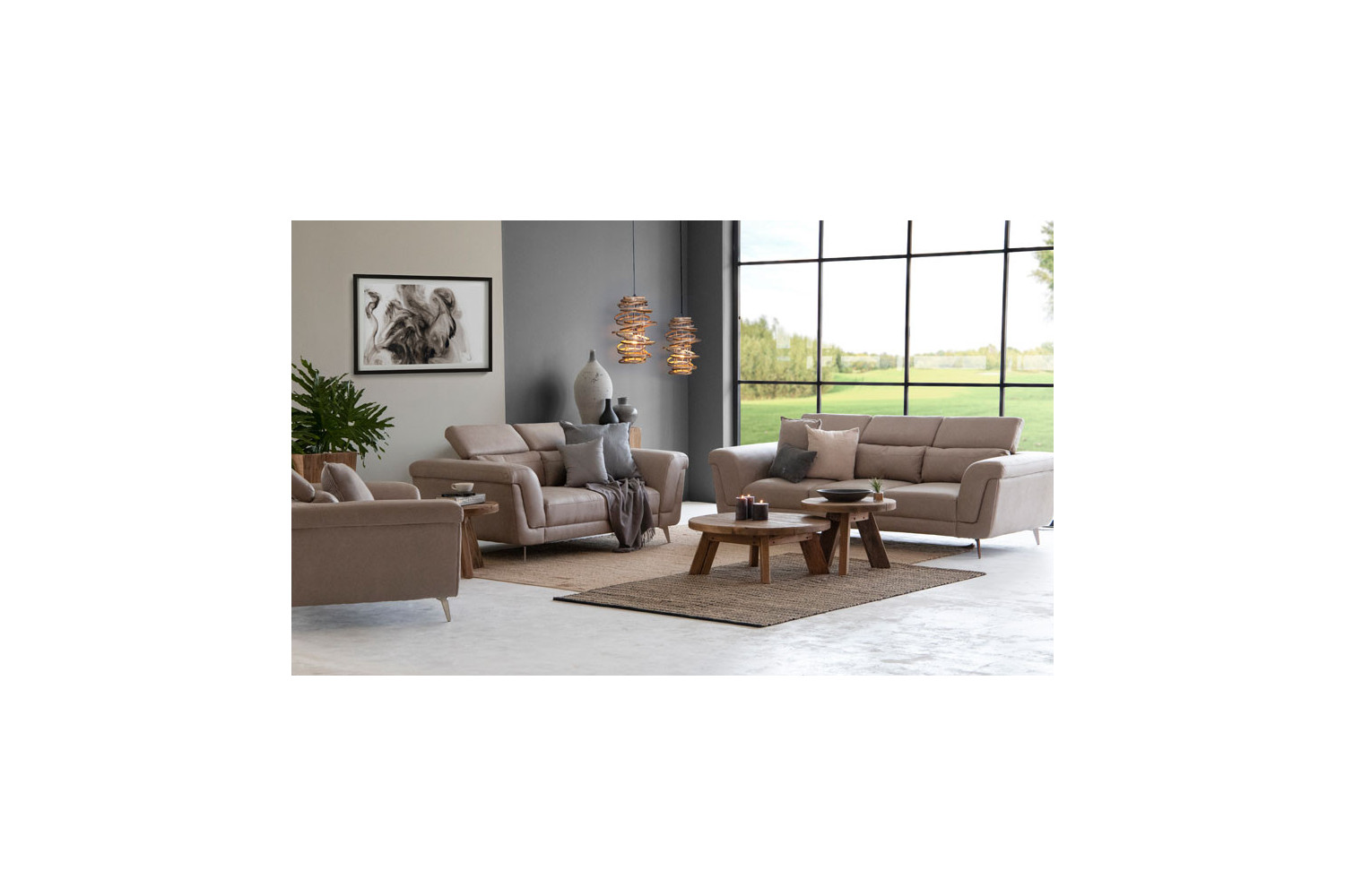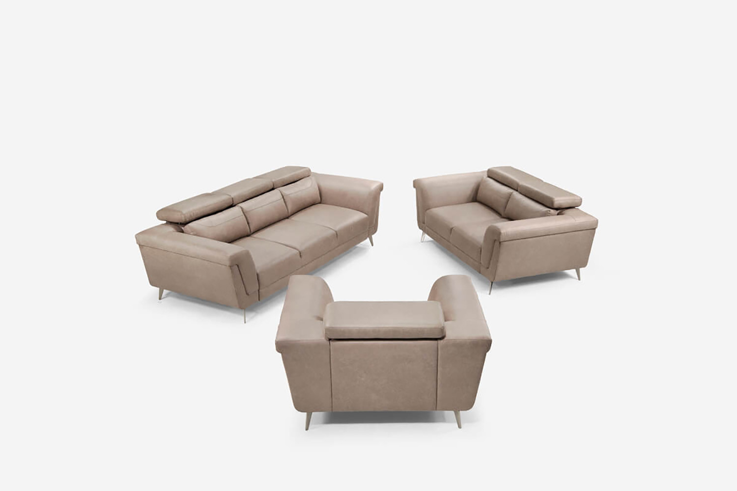 The Laurence Lounge Suite is a modern, comfortable, and generously proportioned lounge suite, complete with adjustable headrests. Ideal for hosting friends and family, the Laurence is upholstered in high-quality microfibre fabric for hours of luxurious seating.
