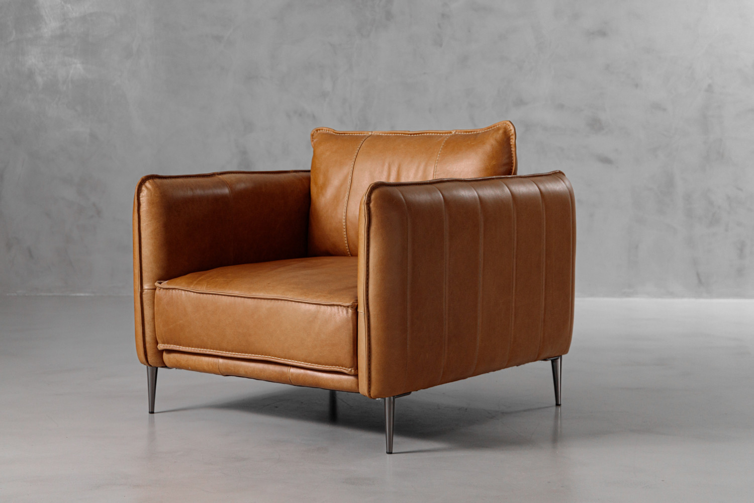 Add an inspiring touch of Mid-century modern elegance to your space with the Ottavia Leather Lounge Suite. With its classic full grain leather texture, this suit is a natural statement piece that add visual ‘zing’ and luxurious comfort to your living space. This ample 3-1-1 suite makes for an ideal modern living room set.