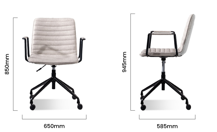 585mm (L) x 650mm (W) x 850mm - 945mm (H)