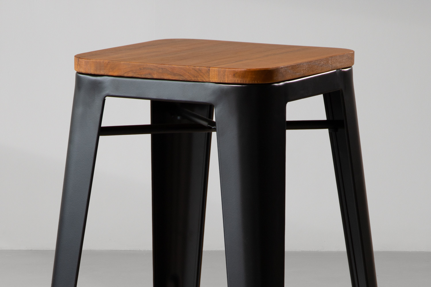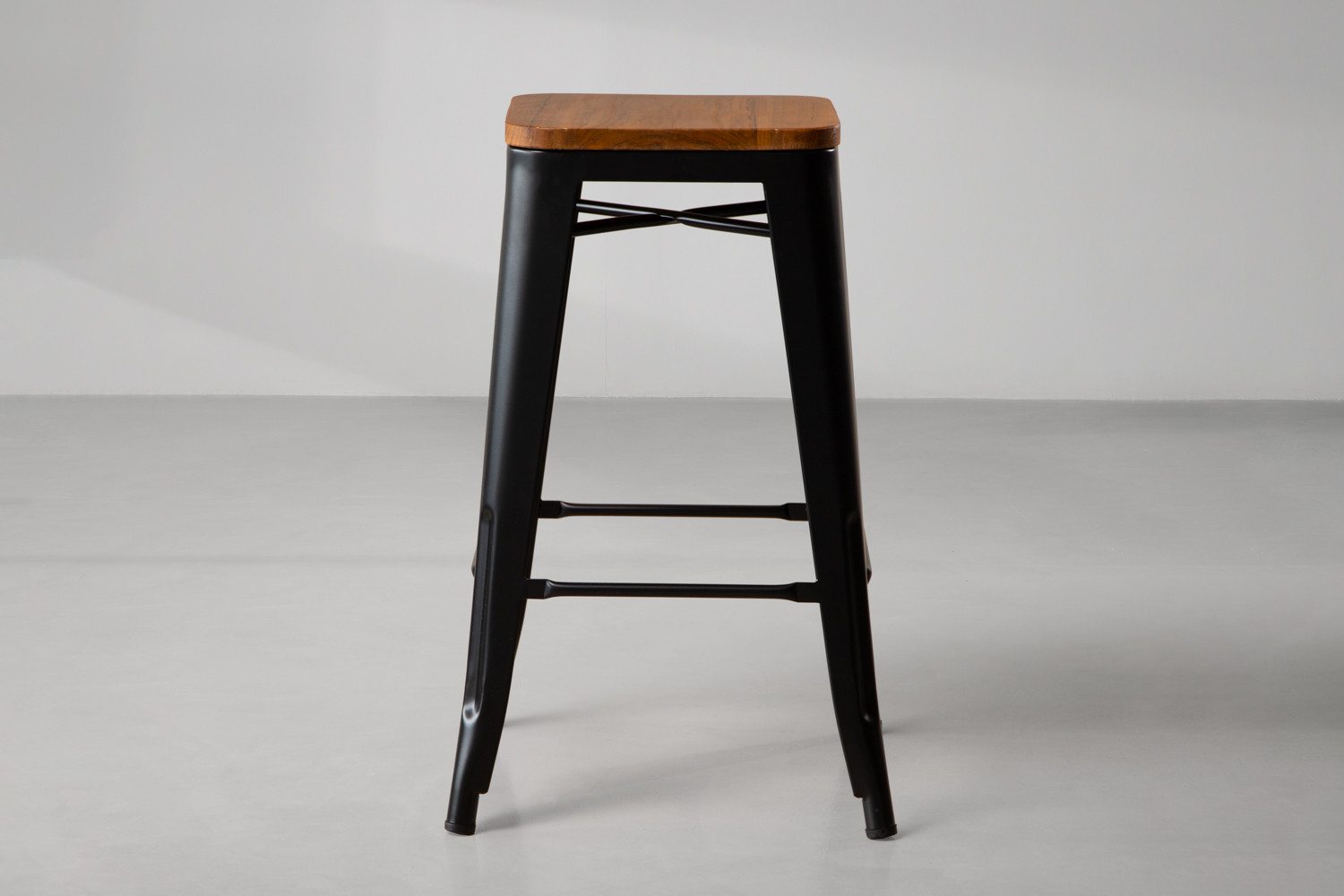 The Matlin Bar Chair captures a simple, yet trendy and versatile look that’s perfect for industrial and contemporary style spaces. Featuring a sleek, strong metal frame with footrests on all sides and a sturdy Elm wood seat, this stackable bar chair offers an ideal blend of easy convenience, practicality and style.