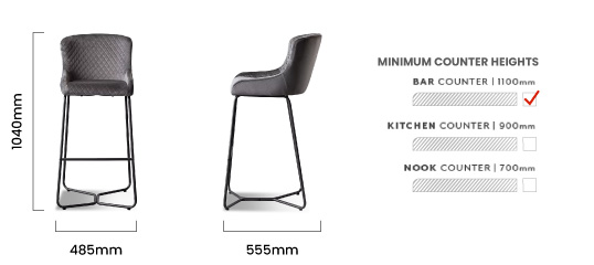 For an enticing blend of comfort and sophistication, the Mayfield Bar Chair will win you over with its elegant charm. This tall bar chair’s plush padding and soft-touch fabric not only provide a soft landing but contrast beautifully with the sleek steel frame, giving this piece a perfectly balanced and distinctive aesthetic.