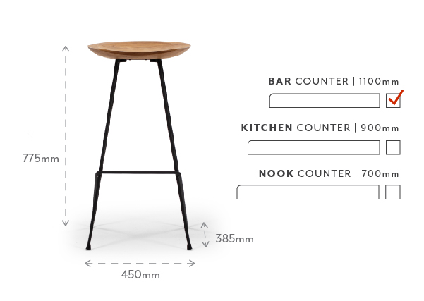The Melina Tall Bar Stool marries contemporary living with industrial flair. It features a sturdy mild steel frame with an attractive abstract shape, and contoured seating moulded from premium teak wood. As a symbol of urban luxury it offers chic, contemporary presence and unmatched comfort.