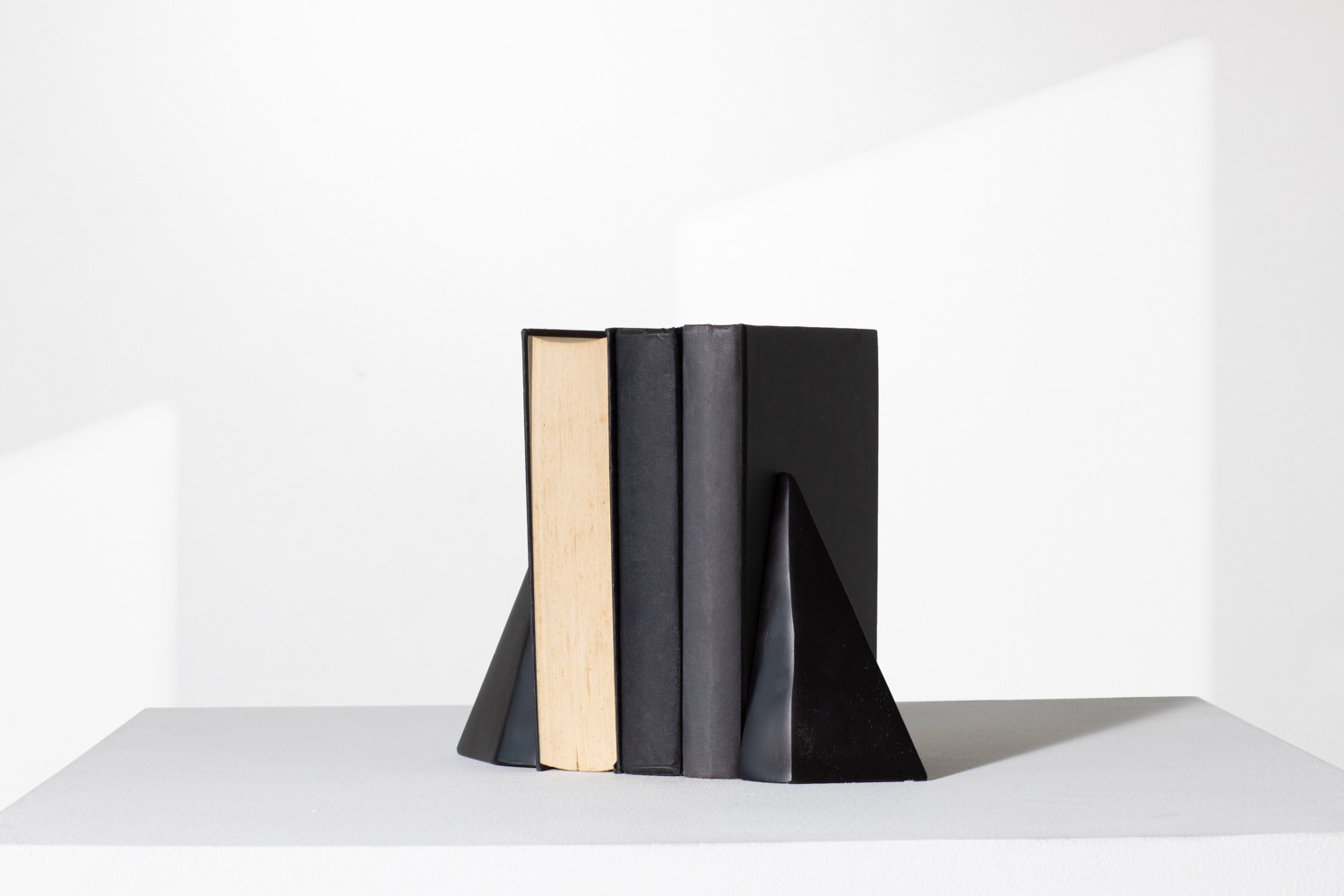 The Iris is a pair of functional metal decor items with crafted appeal. Their triangular aluminium design ensures they are perfectly suited to serve as distinguished bookends in any modern setting.