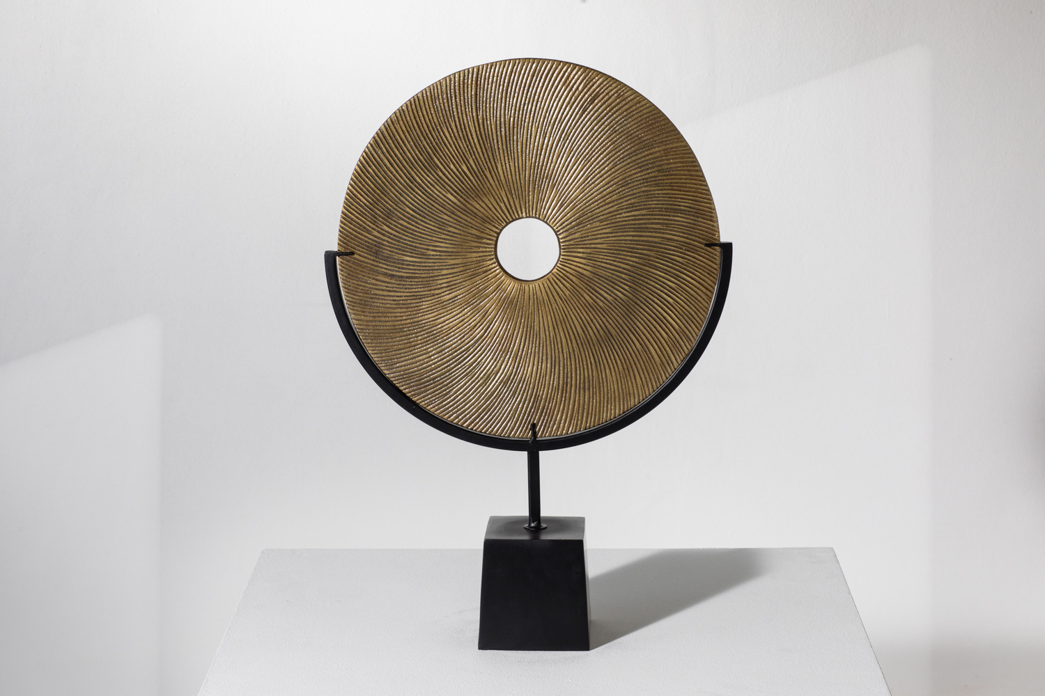 Get lost in the mesmerising spiral design of the Jabara Metal Sculpture. It features a textured aluminium disc firmly held in a mild steel base. There’s no looking past this premium piece of decor.