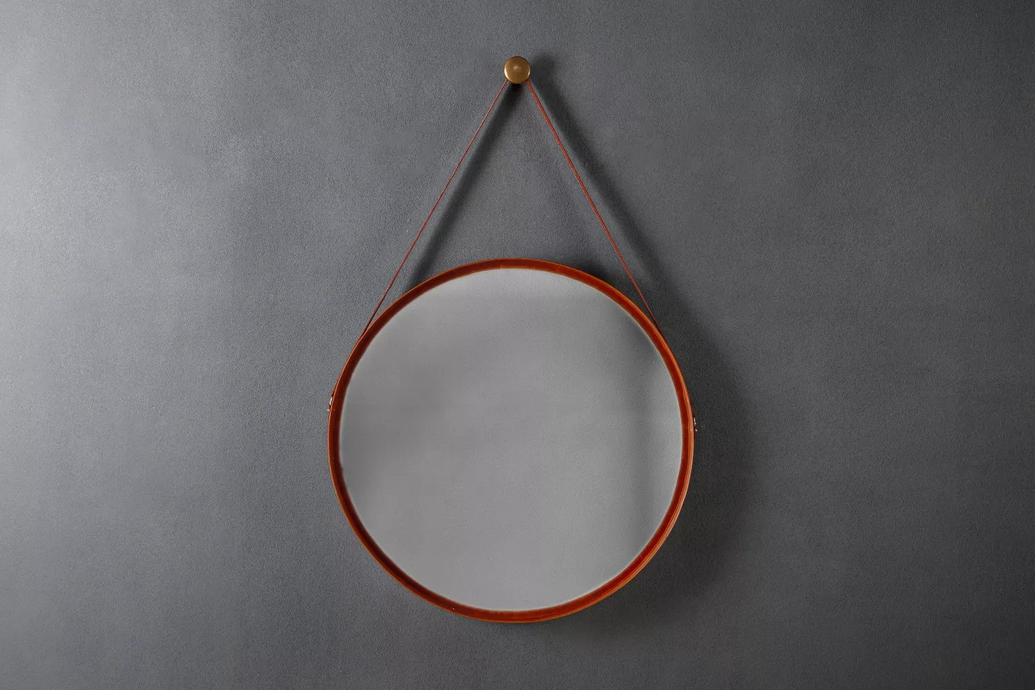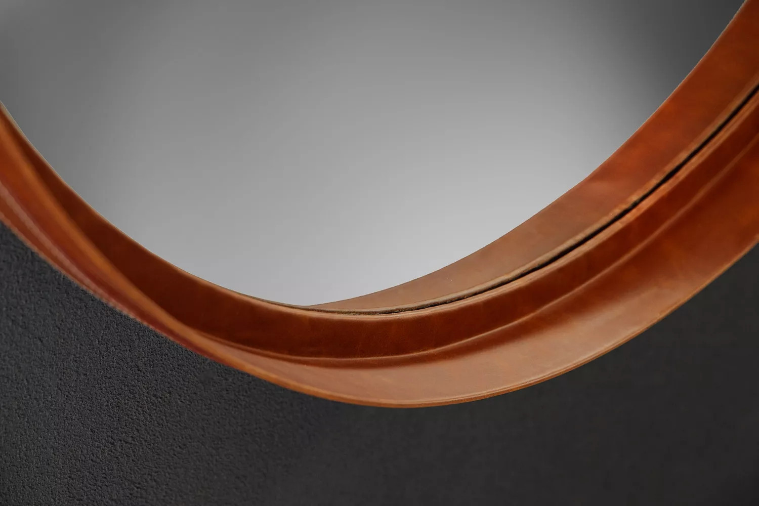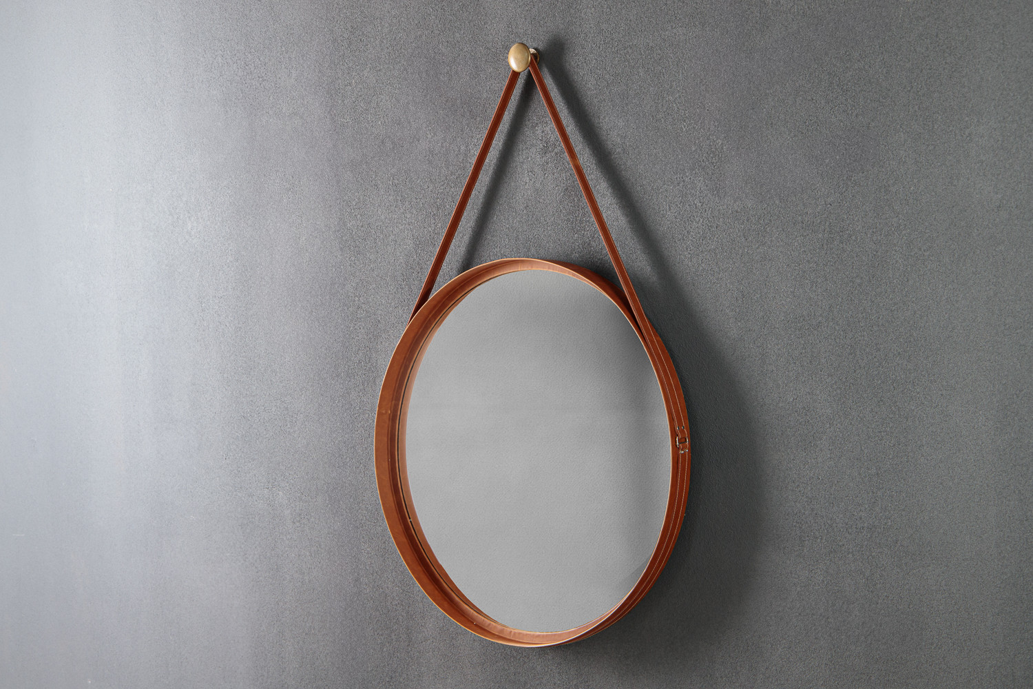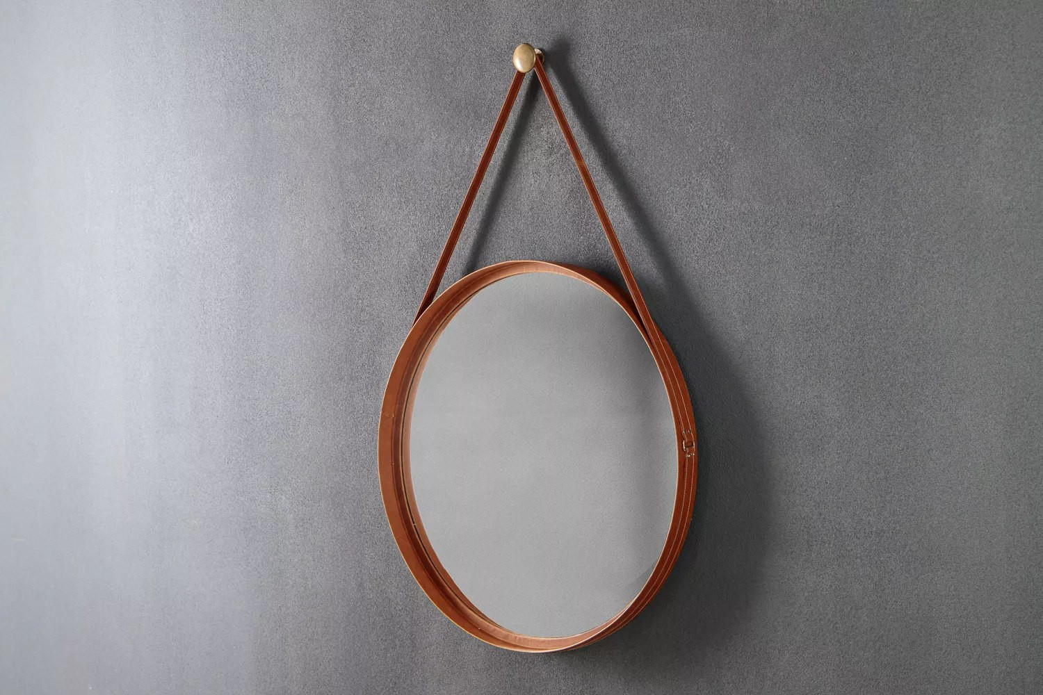 Add a touch of sophistication to your home with the Nyla Leather Framed Mirror. This statement piece combines functionality and beauty, featuring a circular mild steel frame that radiates modern elegance. The leather strap enhances its unique design, providing a practical yet stylish hanging solution. Perfect for any room, this mirror complements a wide range of decor styles, making it an ideal choice for contemporary and classic interiors alike. This piece includes a hanging attachment to complete its alluring appearance.