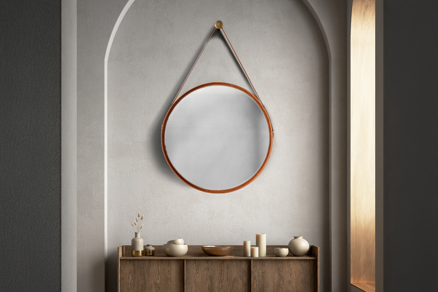 The Nyla Leather Framed Mirror is the perfect blend of artistry and utility. Designed to make a statement, this large circular mirror is framed with premium mild steel, offering a minimalist yet bold aesthetic that suits any room. The addition of a leather strap provides a practical hanging feature while infusing warmth and texture into the design.