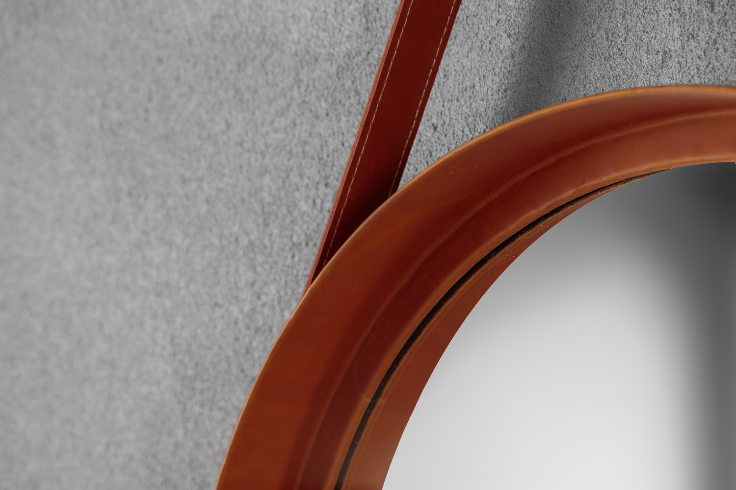 Elevate your home with the Nyla Leather Framed Mirror, an exquisite piece that seamlessly combines timeless design with modern functionality. Its circular arrangement adds elegance, while the mild steel frame ensures durability. The addition of a leather strap makes it easy to hang, creating a stylish focal point on any wall. Designed for versatility, the Nyla Mirror suits any room, from entryways to bedrooms, providing both beauty and practicality. This piece includes a hanging attachment to complete its alluring appearance.
