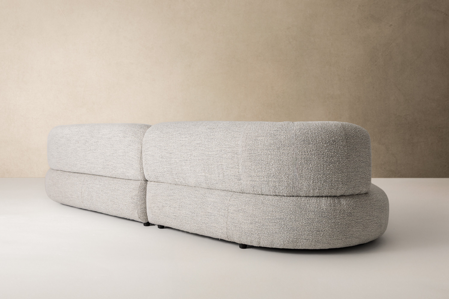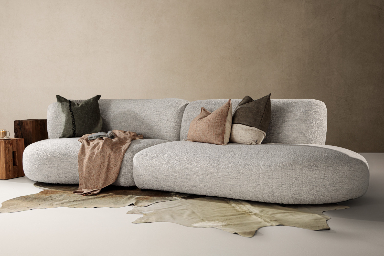 Designed to enliven modern interiors, the Amberweave’s rounded silhouette and refined seam work deliver elegant presence. Deep, supportive seats invite you to stretch out, while the curved corner encourages easy conversation. Its textured upholstery pairs beautifully with neutral palettes, timber tones, and layered décor.