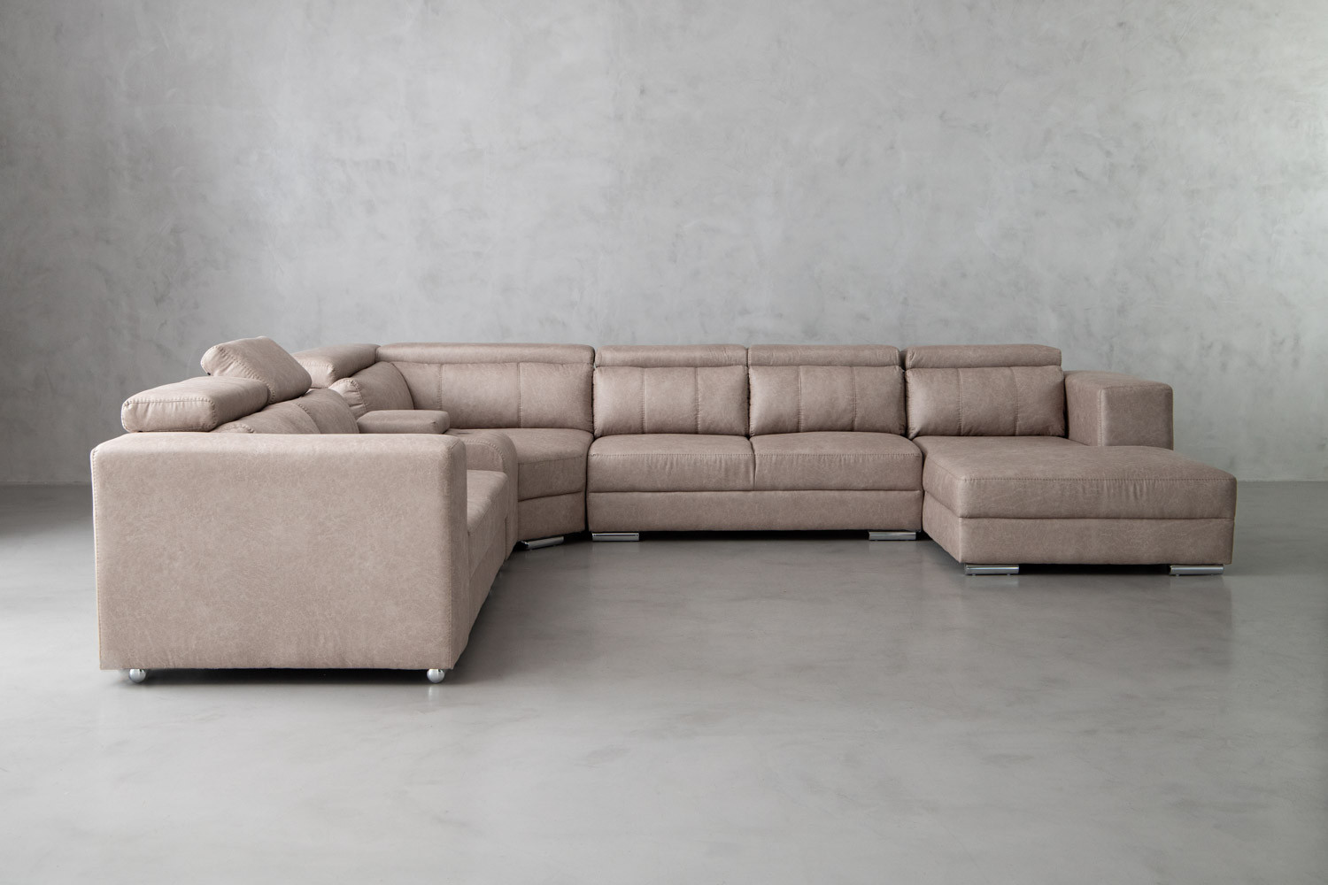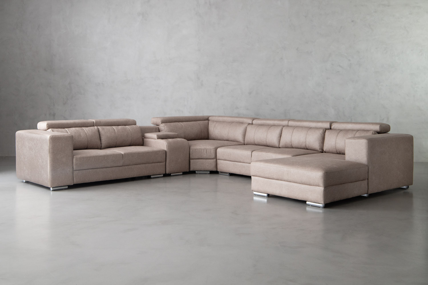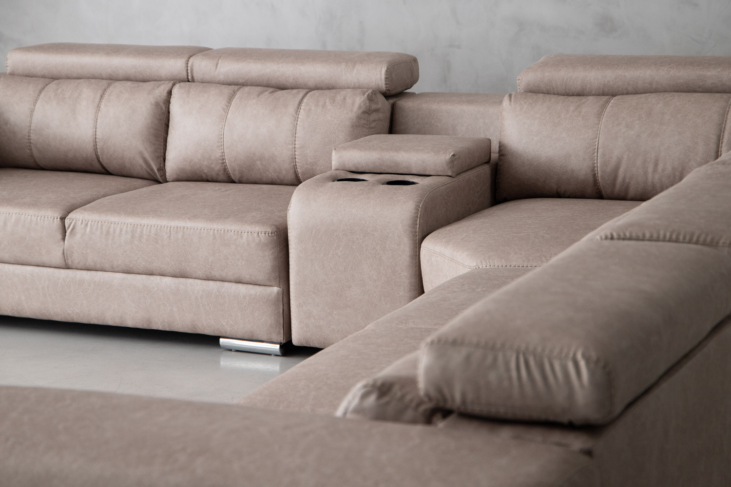Perfect for movie nights, the Callaghan's plush cushions and generous dimensions provide unparalleled comfort. With adjustable headrests and added cupholders, you get the full cinema experience in your own home. The couch's corner design optimises space, while the durable microfibre ensures lasting elegance in any contemporary setting.