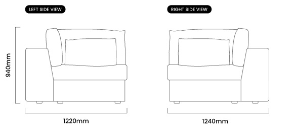 1220mm (L) x 1240mm (W) x 940mm (H)