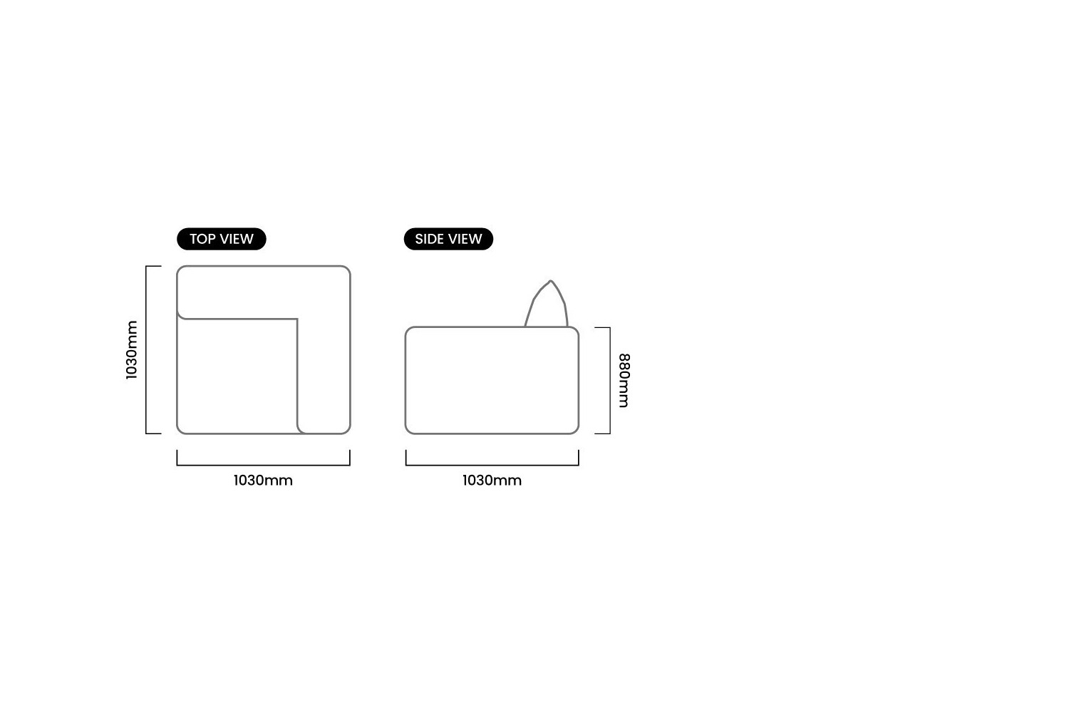 1030mm (L) x 1030mm (W) x 880mm (H) | Seat Height 420mm | Seat Depth 750mm