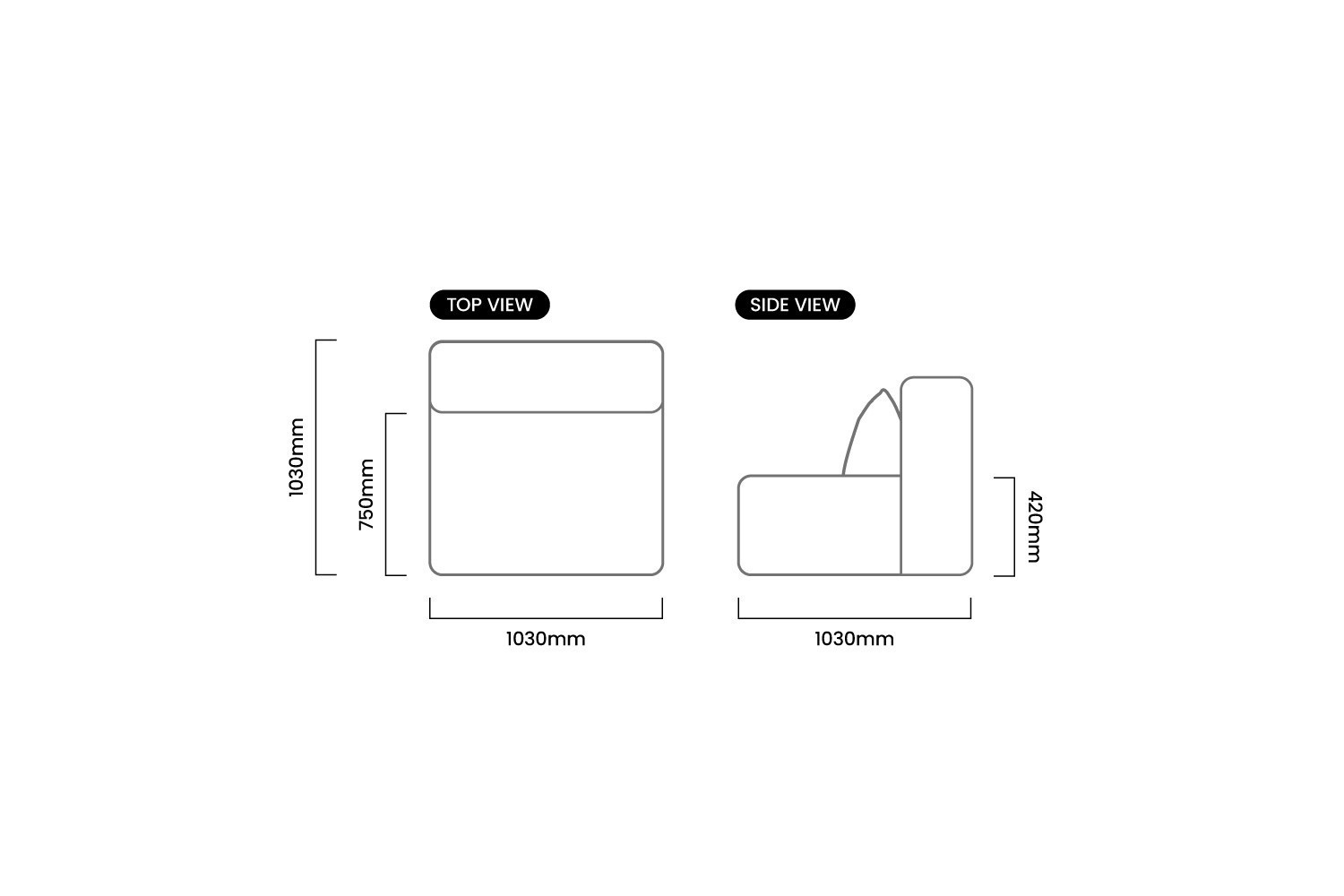 1030mm (L) x 1030mm (W) x 420mm (H) | Seat Height - 420mm | Seat Depth - 750mm
