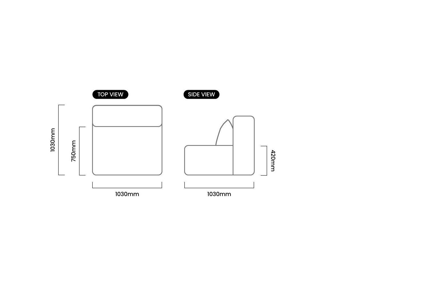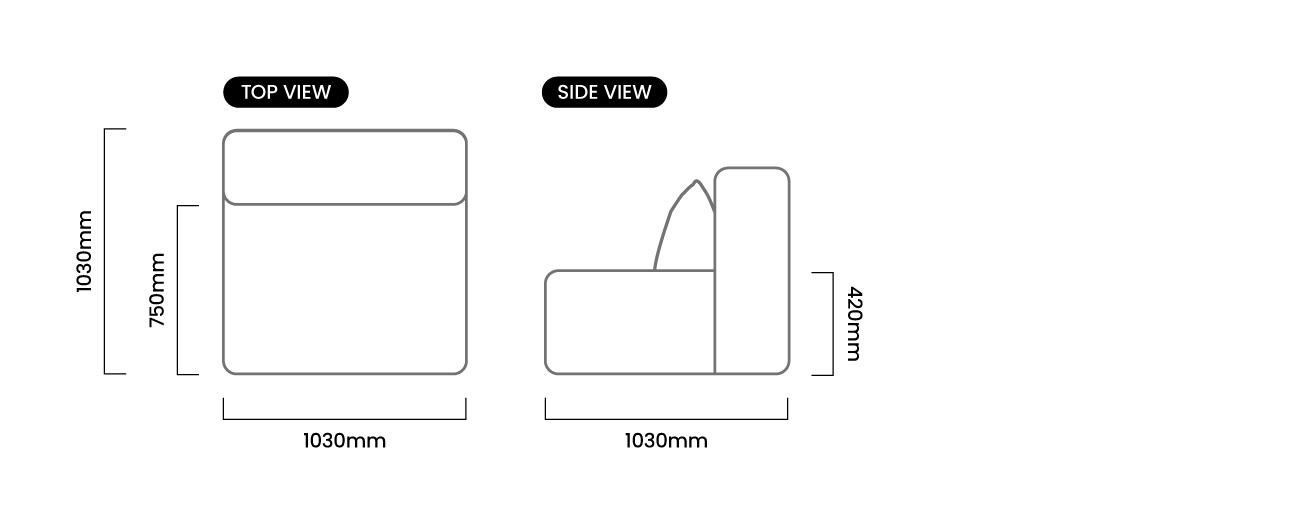 1030mm (L) x 1030mm (W) x 880mm (H) | Seat Height 420mm | Seat Depth 750mm