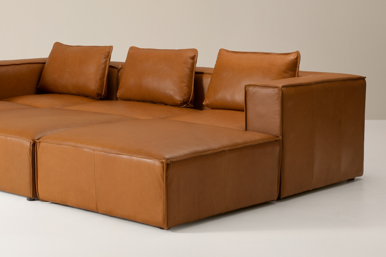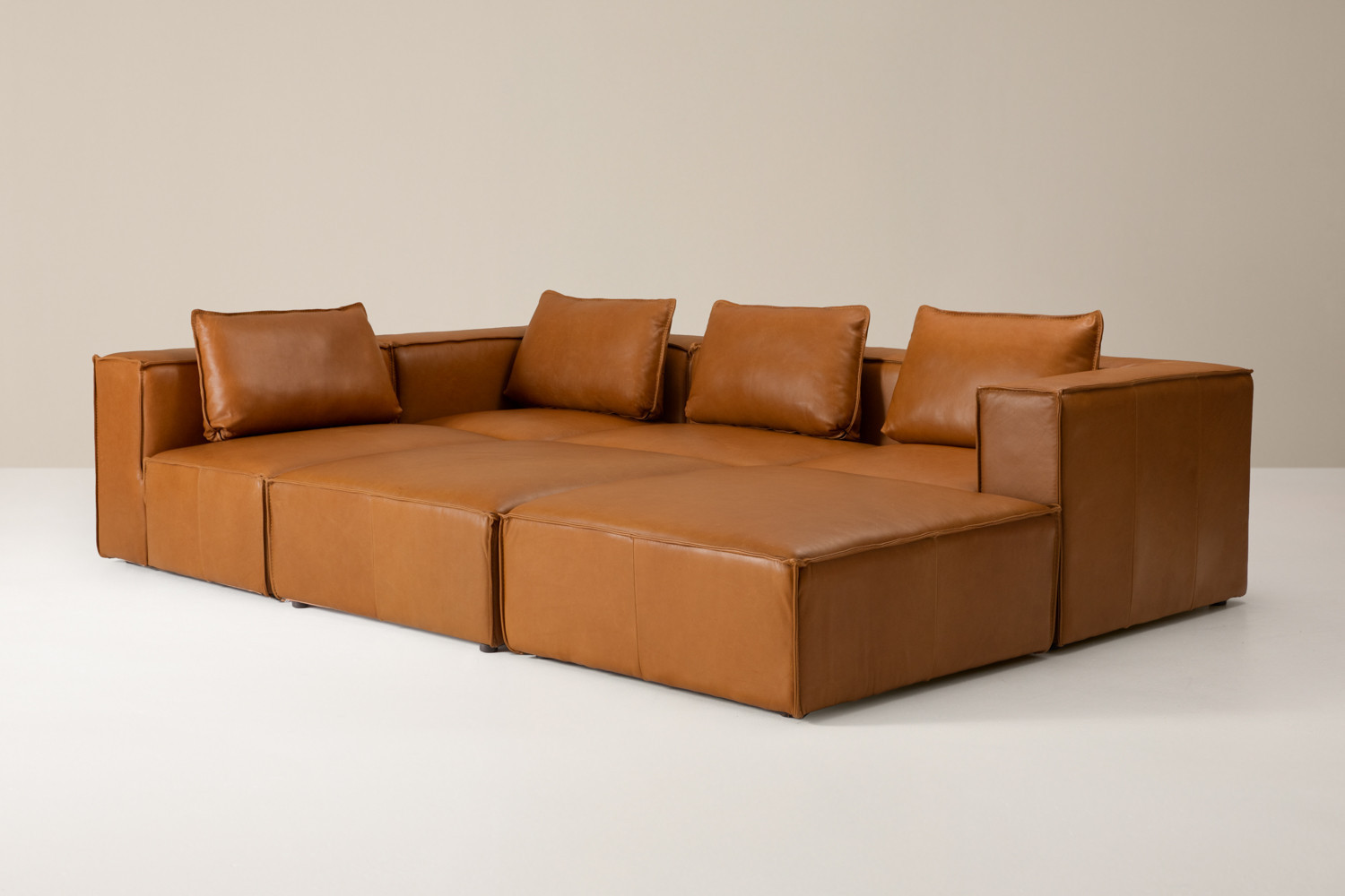 The Montclair Leather Grand Modular Couch presents uncompromising comfort in a modern modular design that adjusts to your everyday needs. Its rich tan hue and multiple configuration options mean that the Montclair is suitable for a variety of living spaces and interior settings. The plush full-grain leather, soft cushions, and spacious design make this the ideal couch for creating a functional contemporary space.