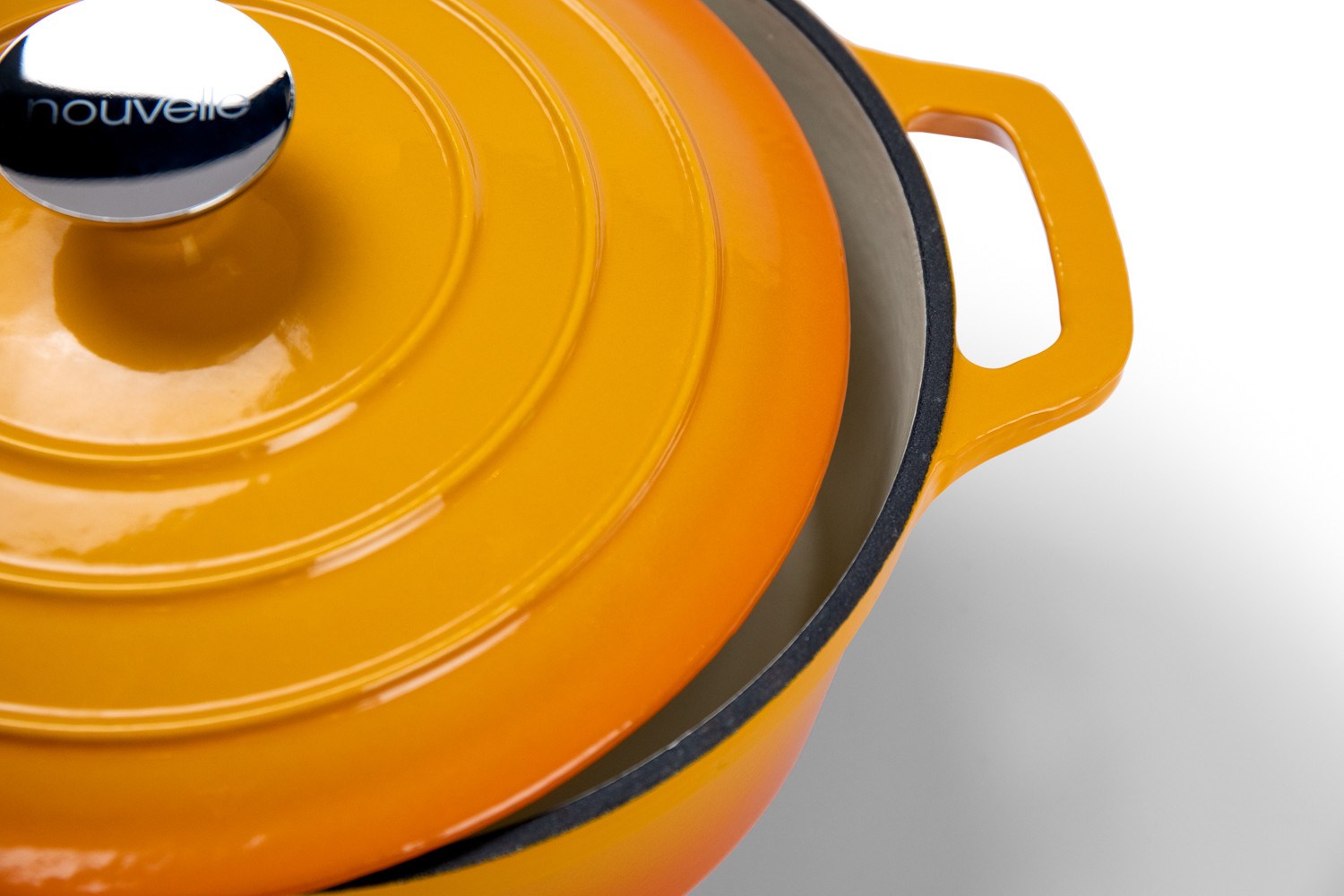 Enjoy all the benefits of Nouvelle high quality enamelled cast iron cookware: