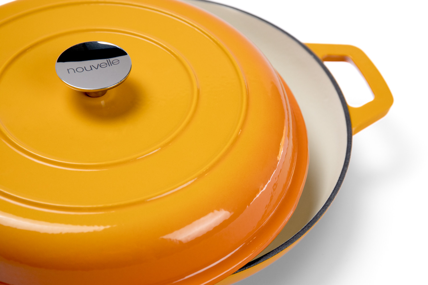 Enjoy all the benefits of Nouvelle high quality enamelled cast iron cookware:
