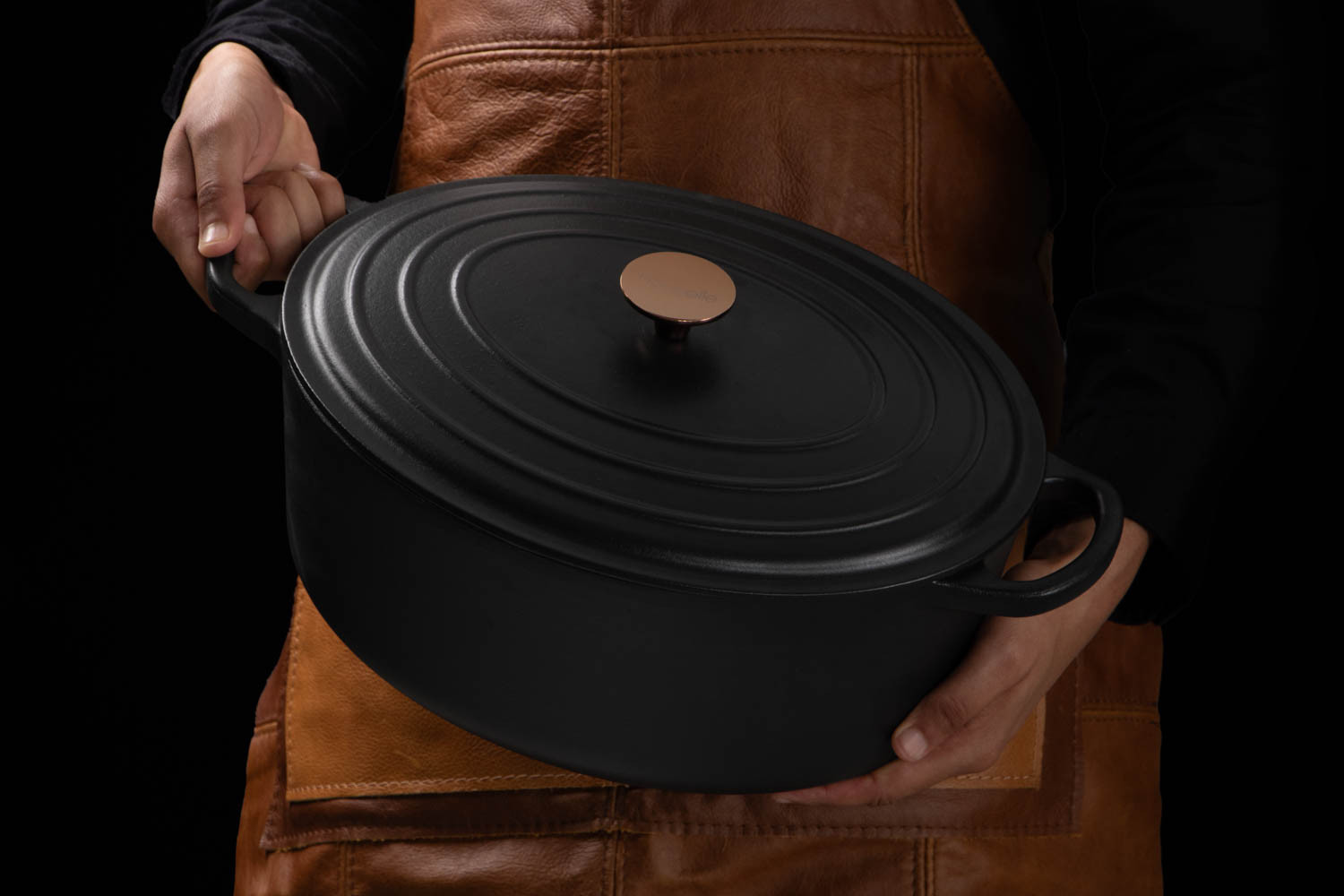 This stylish cookware piece transforms your kitchen by introducing the classic colour tones blended with high-quality enamelled cast-iron. The 35cm oval casserole is the perfect size for cooking one-pot meals and holds nine litres. This pot is suitable for all stovetops, including induction.