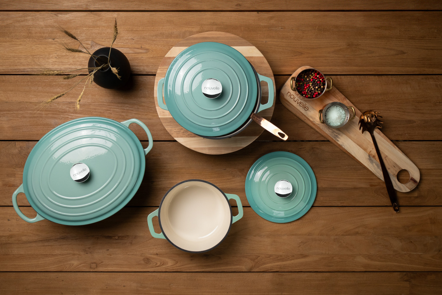 If you think cooking is a bore – think again! Nouvelle brings you an inspired new range of high-quality enamelled cast iron cookware to stir up your passion for cooking and add a hearty dose of charm to your kitchen.