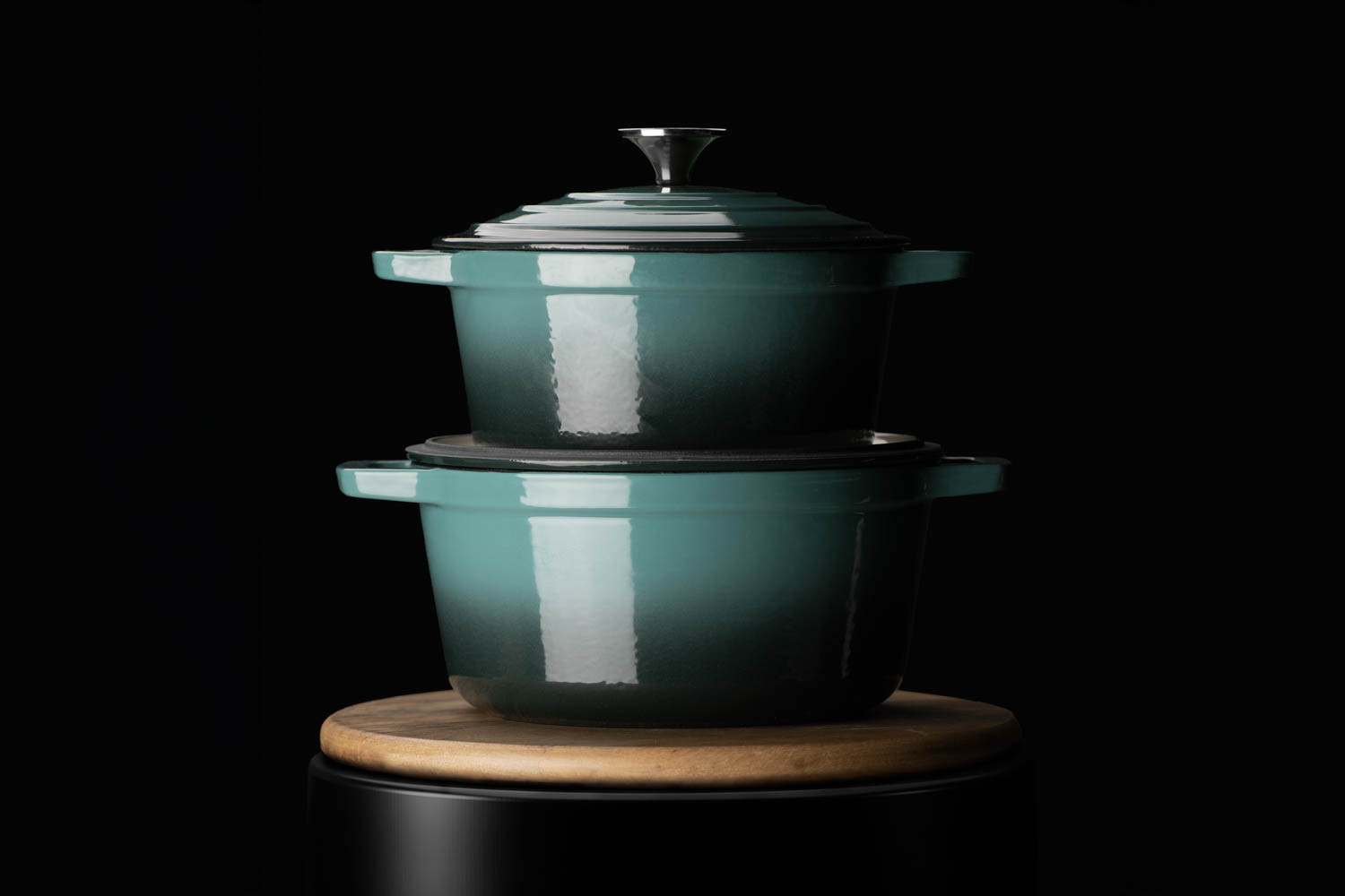 The Nouvelle range features solid die-cast iron glazed with multicoat porcelain enamelling fired at up to 1400 degrees for robust performance. Each piece is hand-finished to create unique and beautiful heirloom pieces you’ll be proud to pass down to the kids.