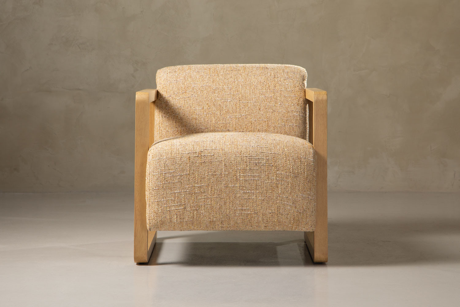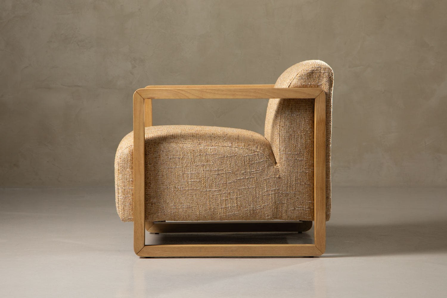 Welcome a sense of wonder to your modern living space with the Baku Armchair. This unique upholstered piece is impressive in any setting as it sits atop a floating frame made from solid rubberwood. Its neutral base tone ensures it can be easily integrated into a broad range of interior settings.
