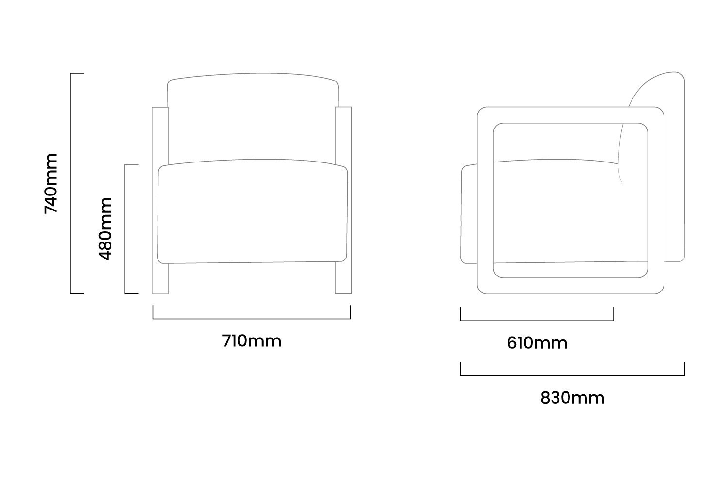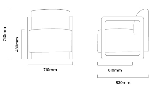 710mm (L) x 830mm (W) x 740mm (H) | Seat Height - 480mm | Seat Depth - 610mm