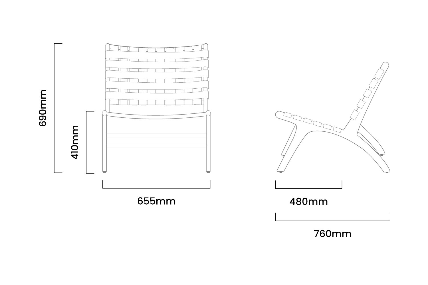 655mm (L) x 760mm (W) x 690mm (H) | Seat height - 410mm | Seat Depth - 480mm