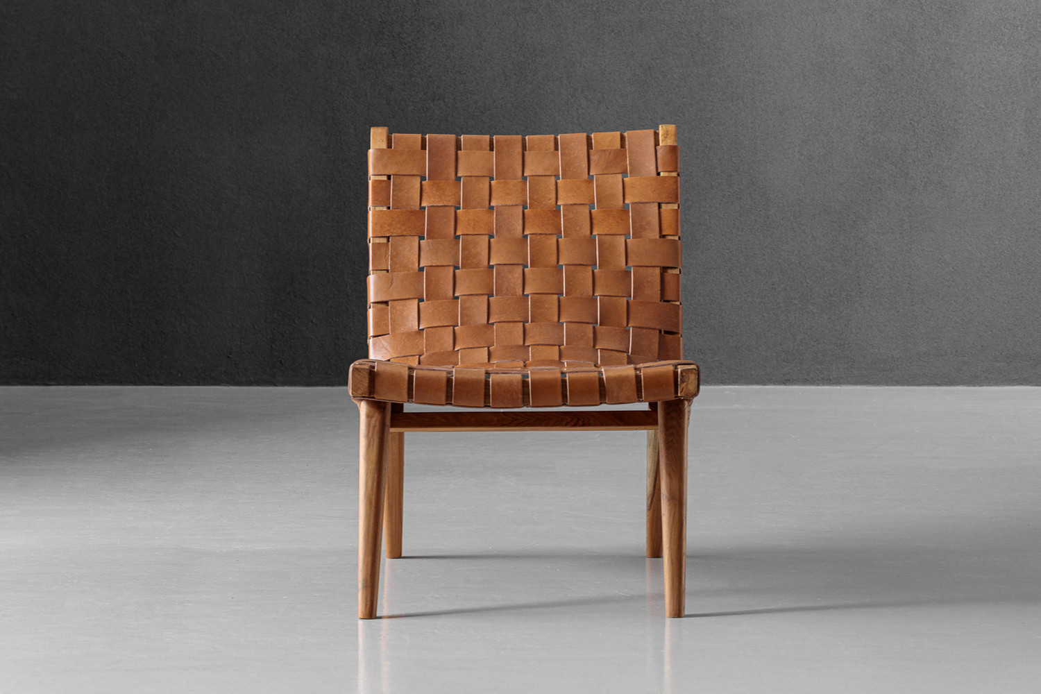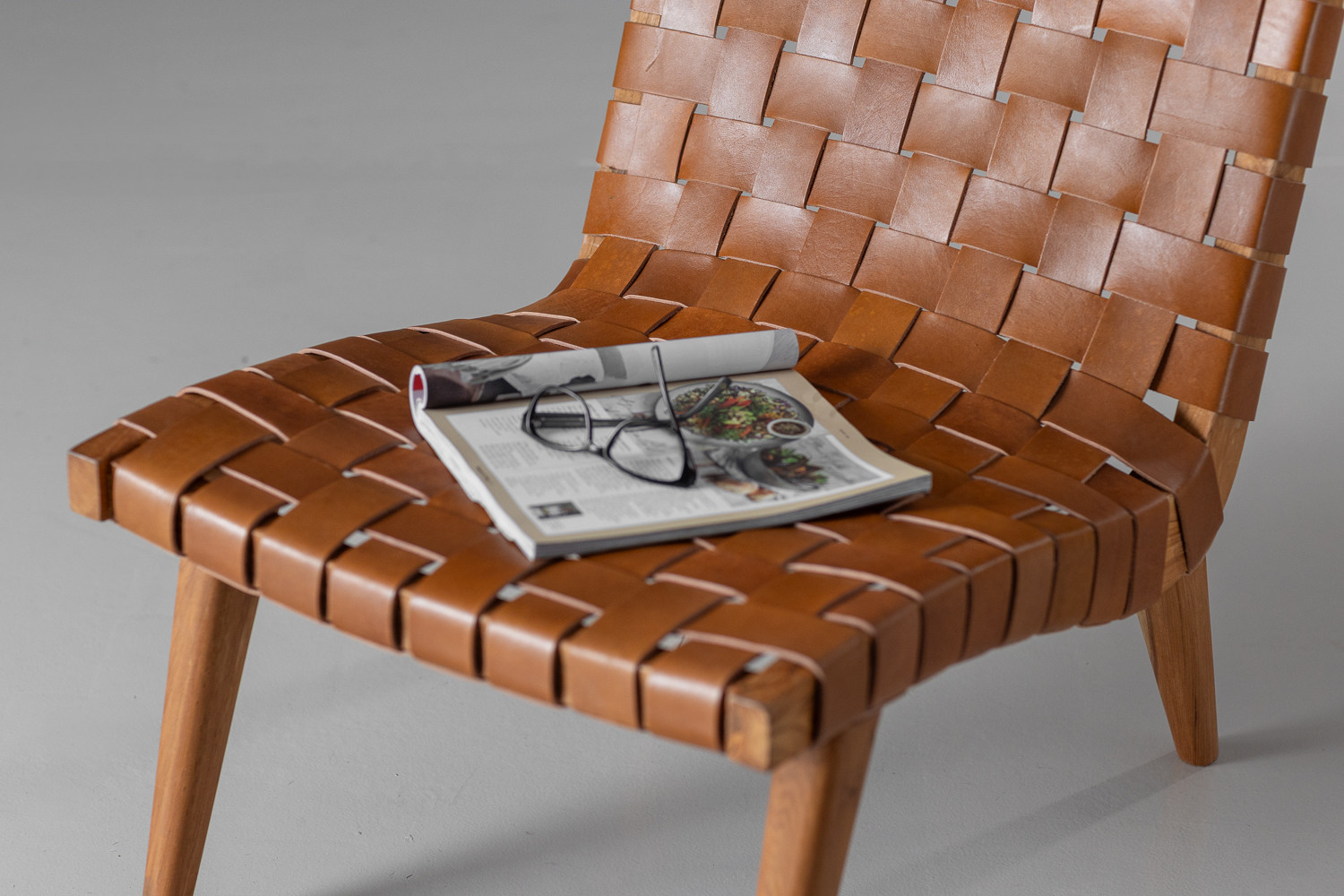 Experience luxury seating at its finest with the Cortina Leather Chair. This occasional chair is a work of art that seamlessly merges modern design with comfort. Its striking silhouette, defined by a solid teak frame and interwoven full-grain leather seat, captures the essence of contemporary style while maintaining a timeless appeal. The interlaced leather strips create a visual texture that is not only captivating but also designed to provide ergonomic support.