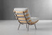 The chair's solid mild steel legs provide strength and durability, while the oak wood veneers introduce a natural element that enhances the mid-century appeal. The bent wood-ripped frame with buckling strap fixings adds a modern twist, giving the chair a unique character that draws attention to its iconic silhouette. Whether used as an accent chair or as part of a seating arrangement, the Fidel Chair is the perfect statement piece to elevate your living room décor.