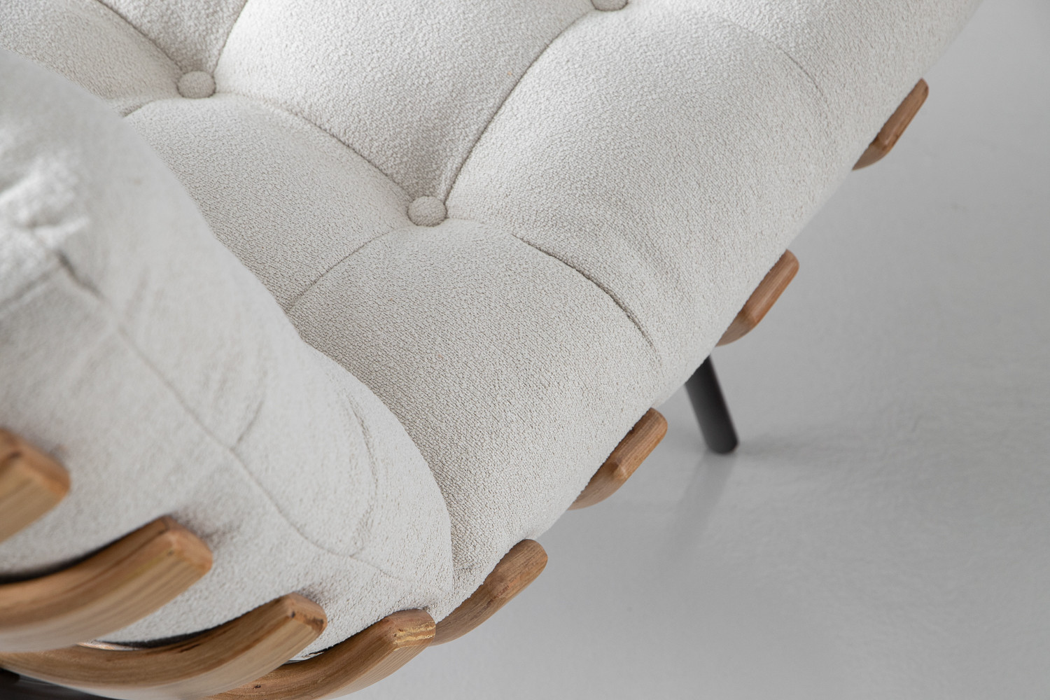 Add a touch of luxury and timeless design to your living room with the Fidel Chair a sophisticated mid-century inspired piece that combines rich materials and elegant craftsmanship. The chair’s polyester fabric cushions are not only soft to the touch but feature intricate biscuit tufted detailing that adds texture and refinement to the overall design. The soft tones of the fabric bring depth and an airy touch making the Fidel Chair both comfortable and visually striking.