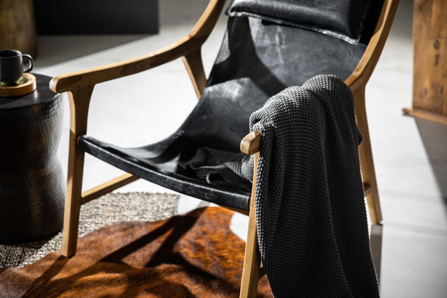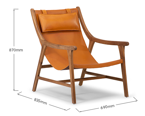 The Harbin Sling Leather Armchair will bring a sense of relaxed sophistication to any space with its elegant design and authentic personality. The supple softness of full-grain leather provides a perfectly luxurious sling seat to relax into, with headrest cushion for ideal neck support. Featuring a beautifully finished solid teak wood frame, this distinctive armchair brings together top-quality materials and impressive craftsmanship for a durable and inviting accent piece to enhance your home.