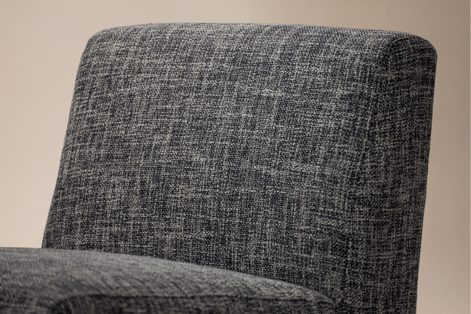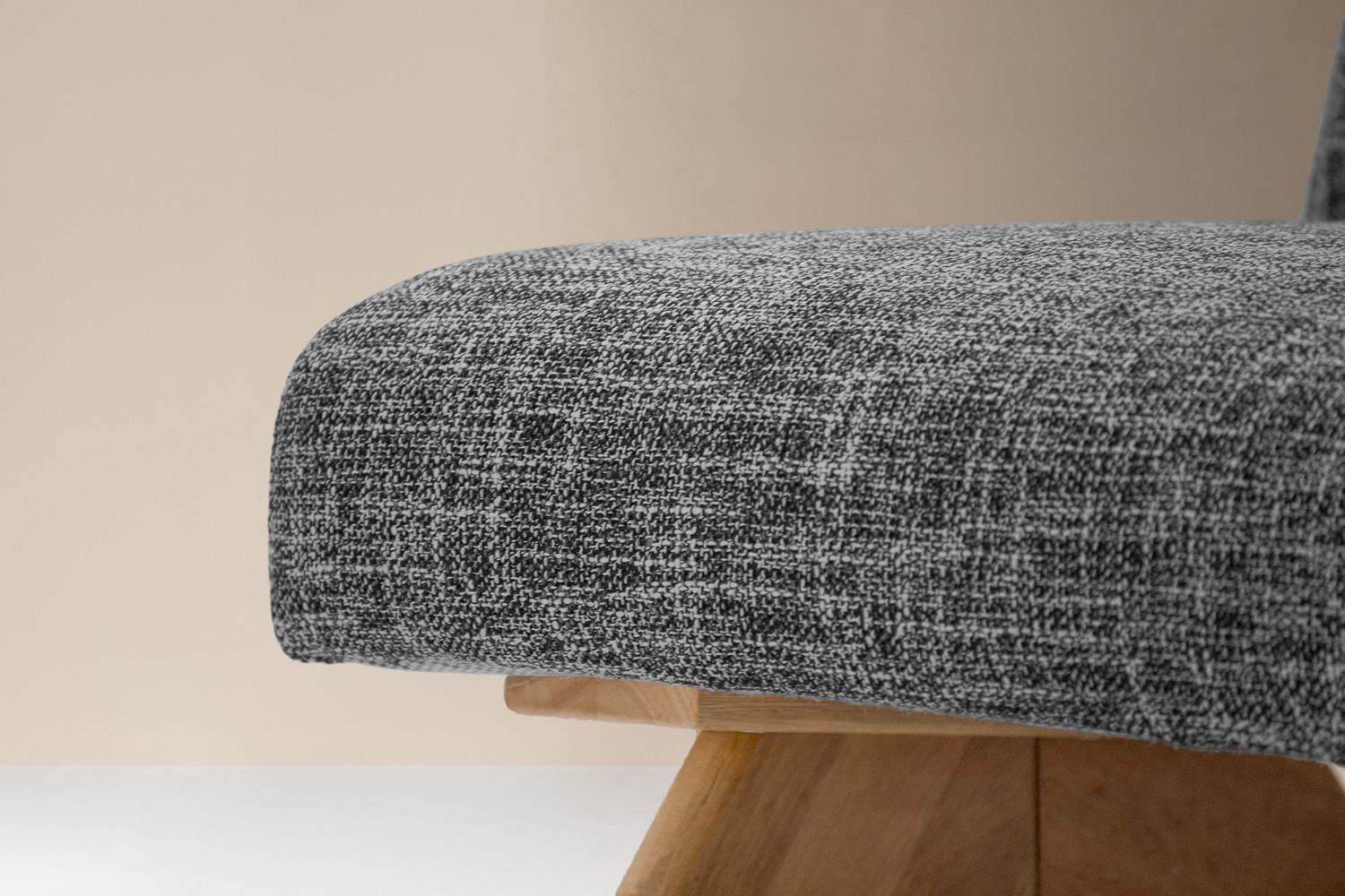 Feel the charming embrace of the Huxley Chair, where inviting design meets understated elegance. Wrapped in a plush, textured fabric, this chair offers a tactile retreat and visual calm with its distinct charcoal palette. The angled rubberwood legs provide a robust foundation, grounding the chair in any contemporary living space.