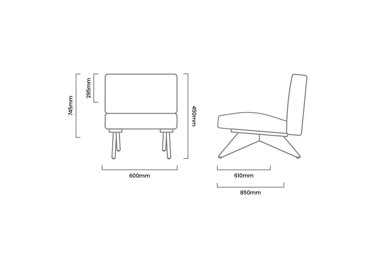 600mm (L) x 850mm (W) x 745mm (H) | Seat Height - 450mm | Seat Depth - 610mm