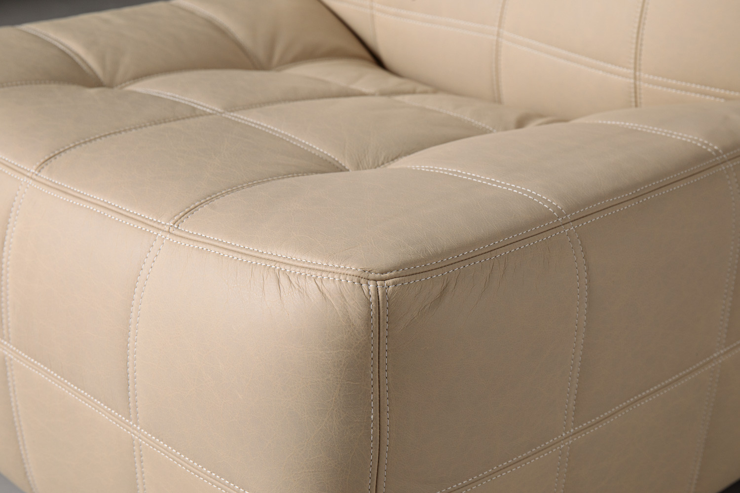Step up your interior style with the Orson Leather Chair, a perfect blend of sleek modern design and luxurious comfort. Featuring full-grain leather upholstery, the chair's square-patterned finish exudes elegance with its clean lines and inviting presence. Designed for both comfort and functionality, the Orson can be used as a standalone piece or as part of a modular set. It's available in this strikingly attractive Ivory shade, and makes a versatile addition to any living room.