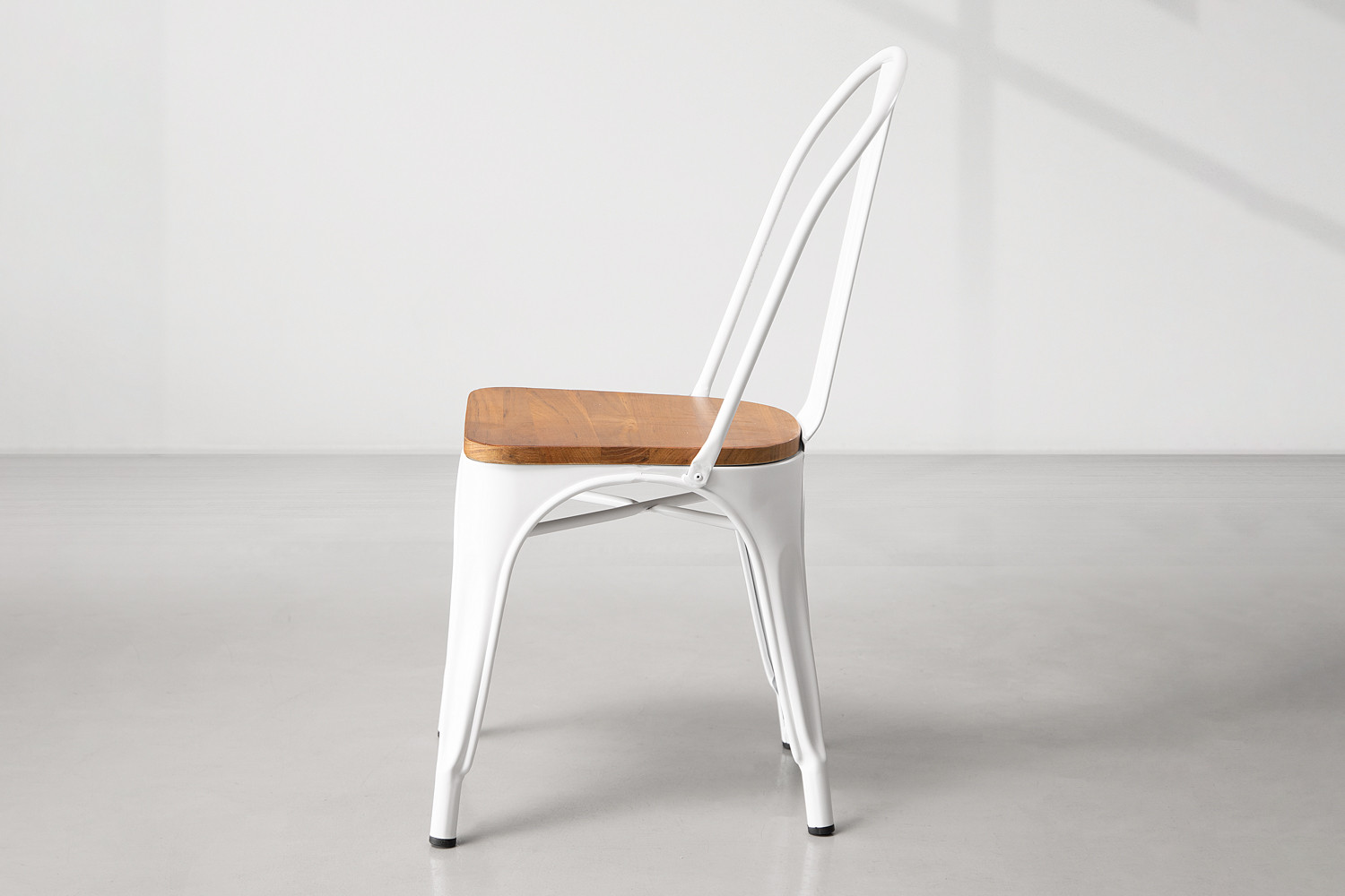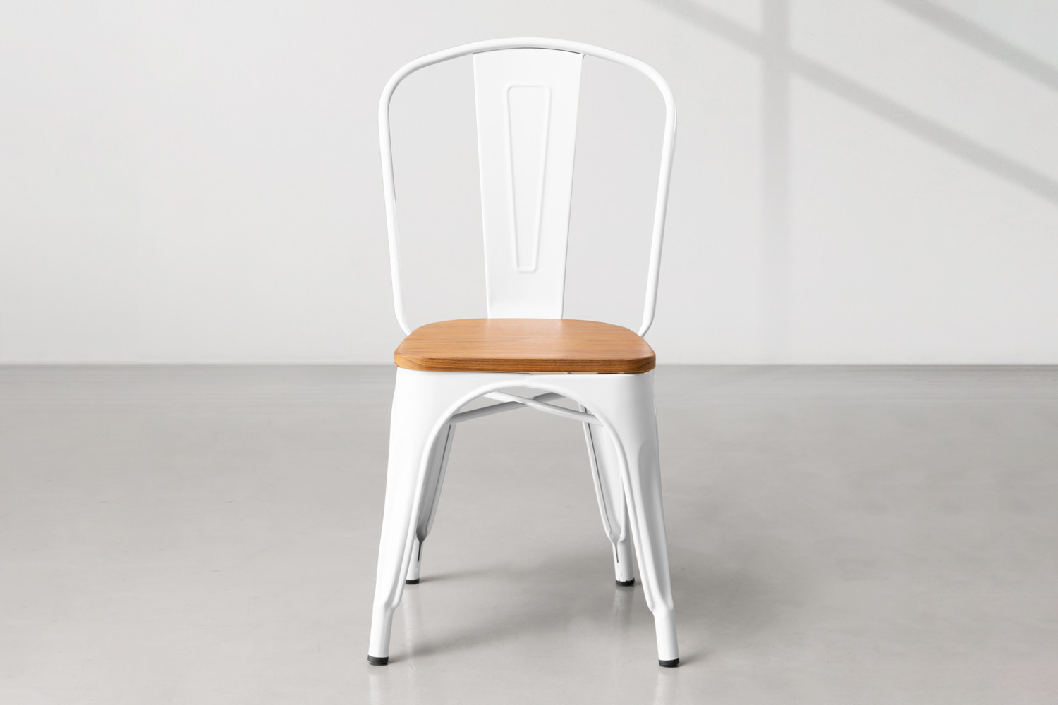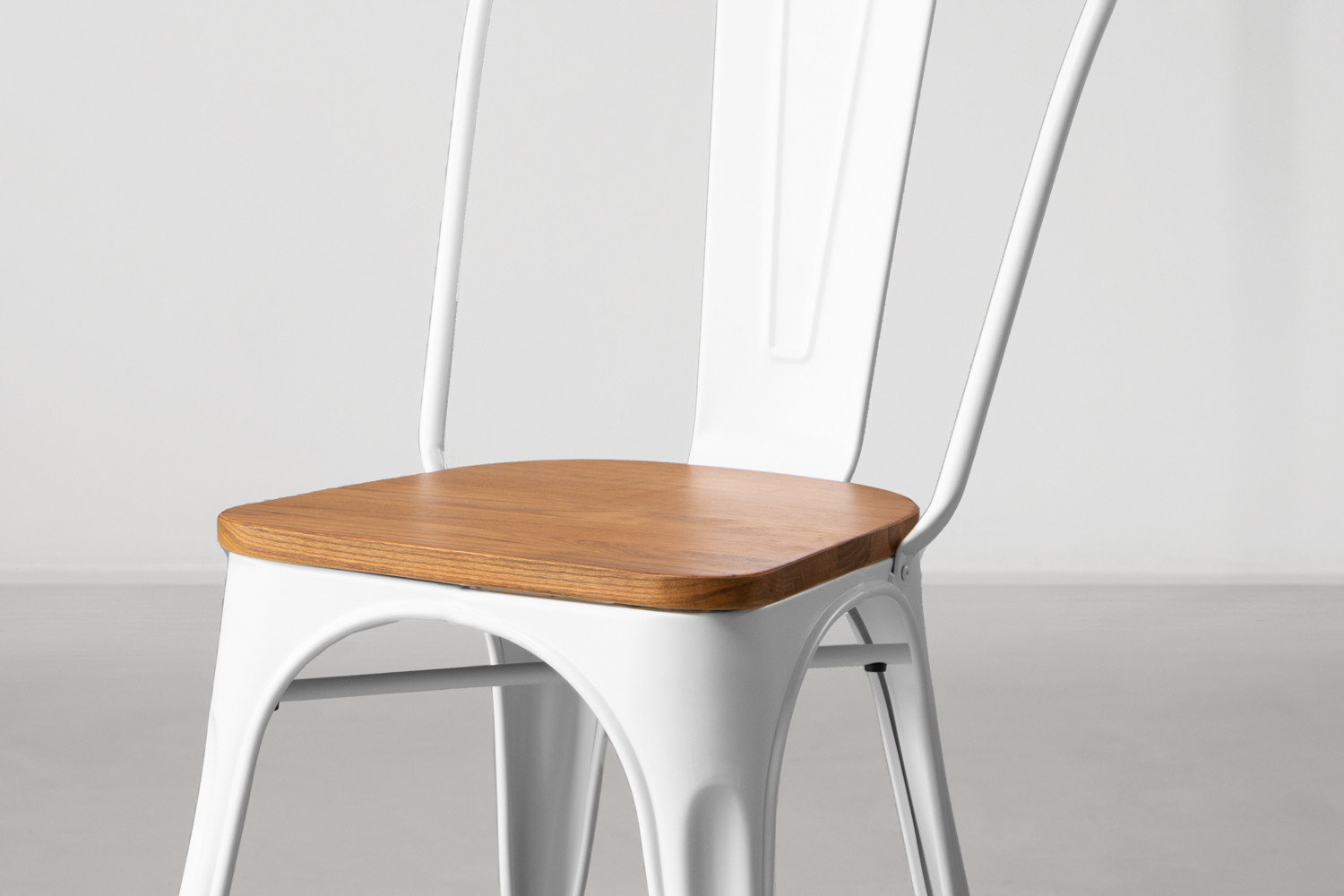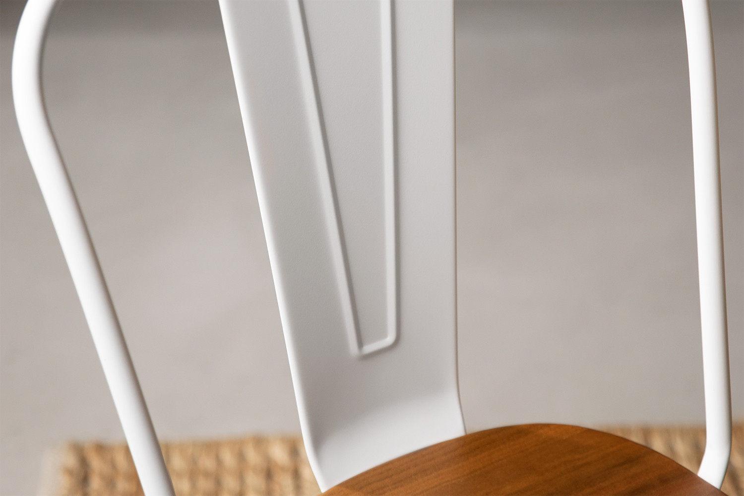 This café-style dining chair with its sleek frame and detailed wood seating creates a relaxed feel thanks to its understated neutral colour palette.