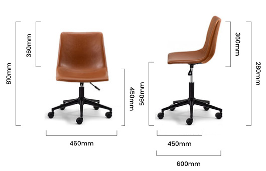 460mm (L) x 600mm (W) x 810mm - 920mm (H) | Seat Height: 450mm - 560mm | Seat Depth: 450mm