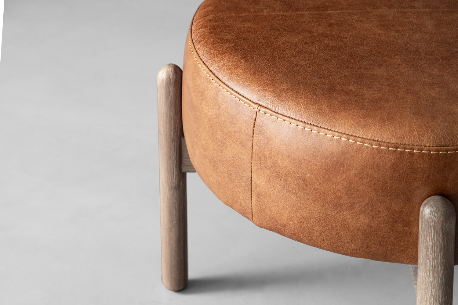 Prague Round Leather Ottoman - Medium - Vintage Tan