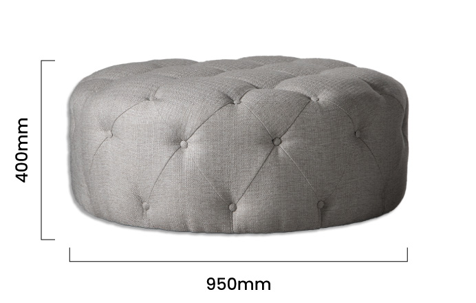 The Amara presents a round ottoman with distinctive deep buttoned detailing, creating a welcoming presence in any living room. The Amara Round Ottoman is firm, soft, and carefully made with high-quality polyester fabric. This handy living room accessory gives your home a warm and cosy feel.