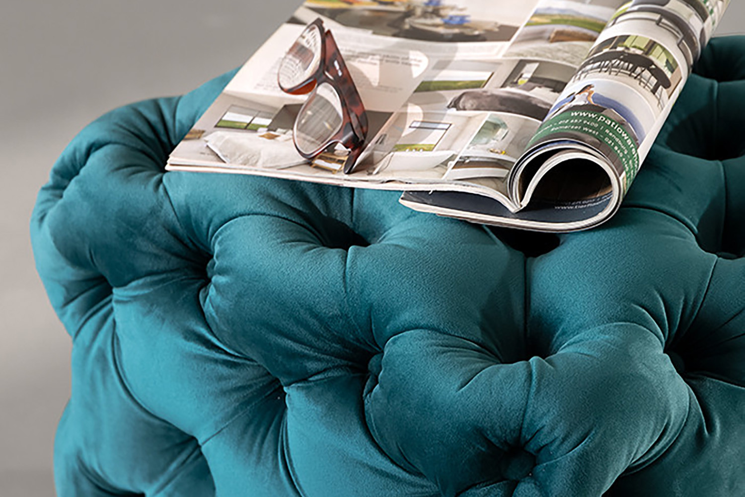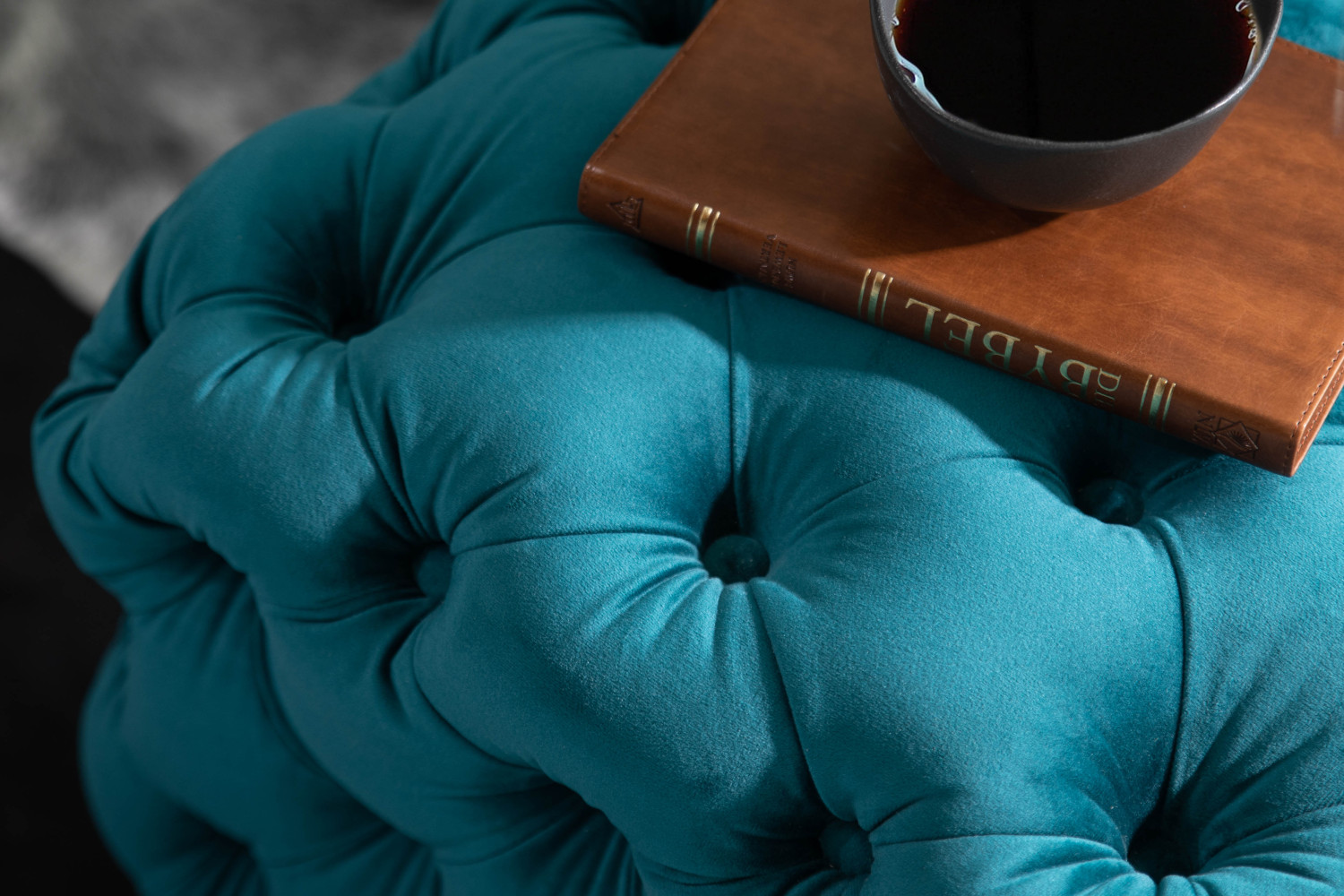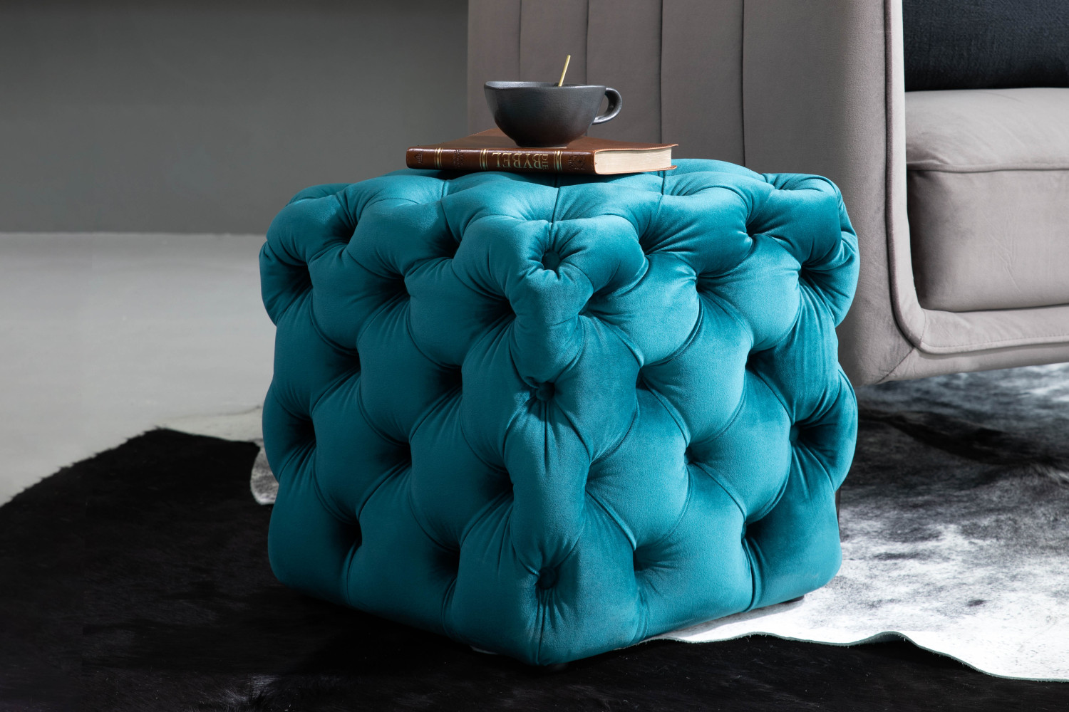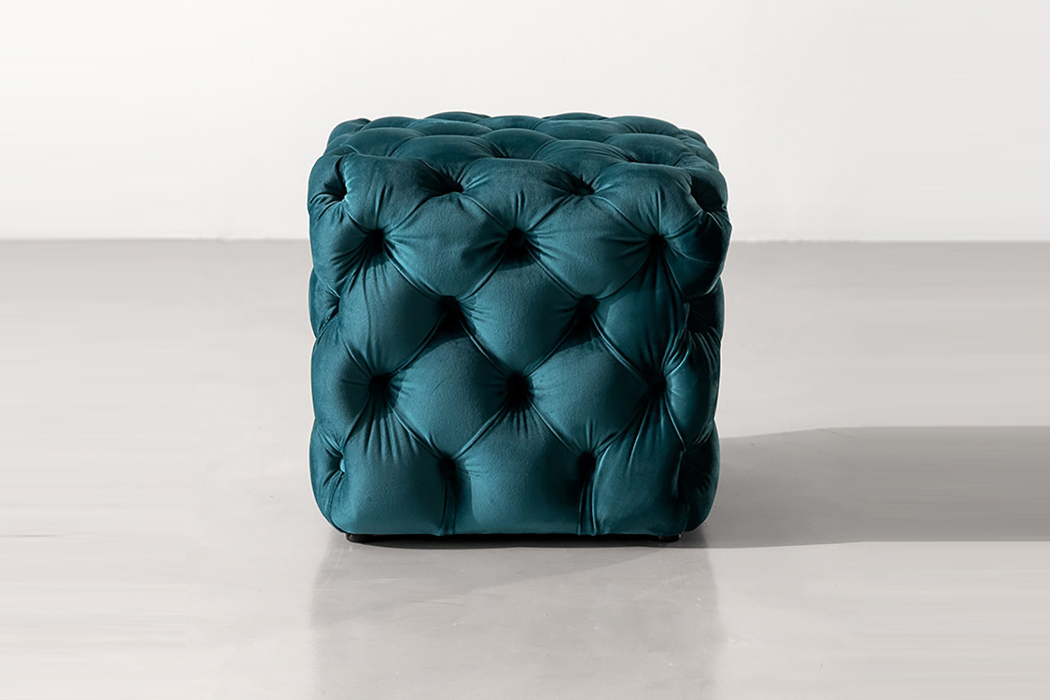 Barkley Velvet Tufted Cube Ottoman - Teal