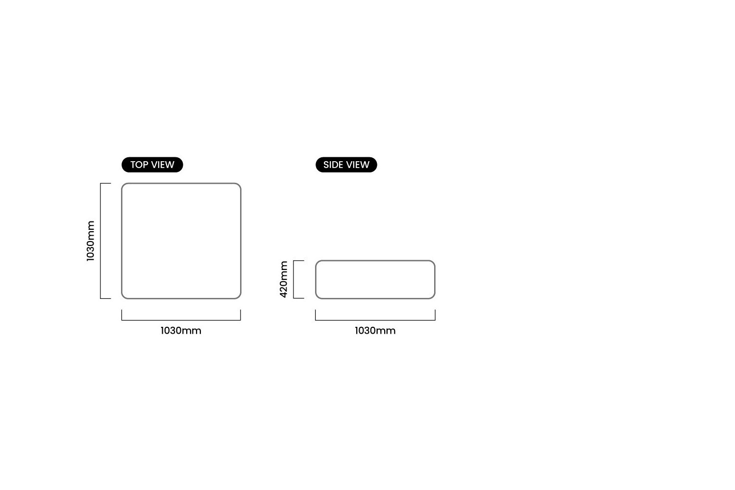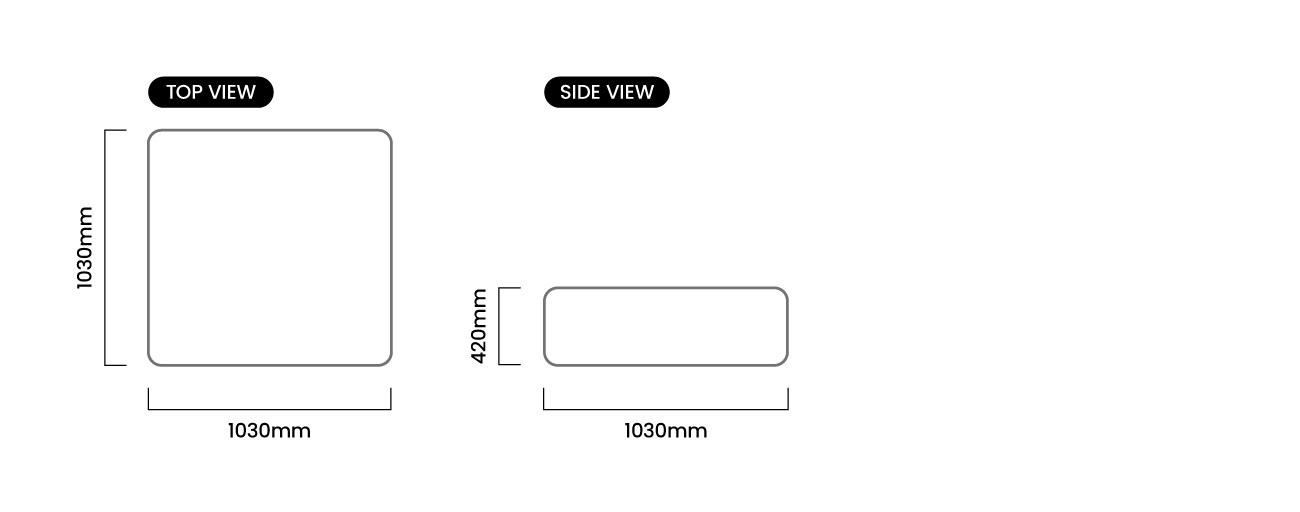 1030mm (L) x 1030mm (W) x 420mm (H) | Seat Height 420mm | Seat Depth 750mm