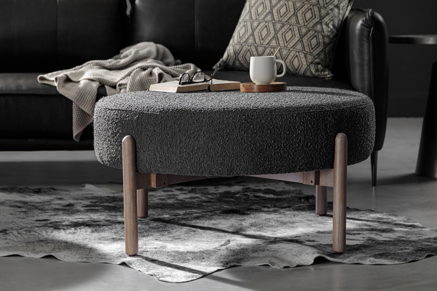Elevate the class and comfort of your home with the Prague Round Ottoman. This distinctive upholstery piece is an impressive accent to any setting. The ottoman sits atop solid rubberwood legs for overall durability and quality.