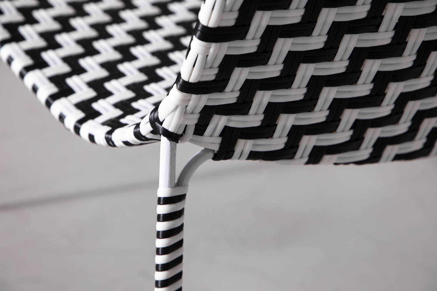 The Clifton Chair is stylish and comfortable, with a fresh mid-century feel. This chair features a patterned PE rattan weave around a mild steel frame. This refreshing patio perch is designed to add distinction to any setting.