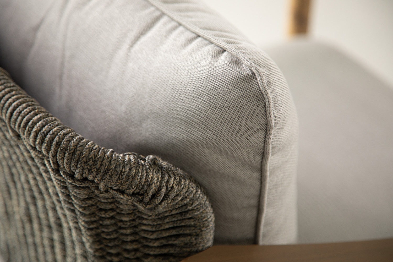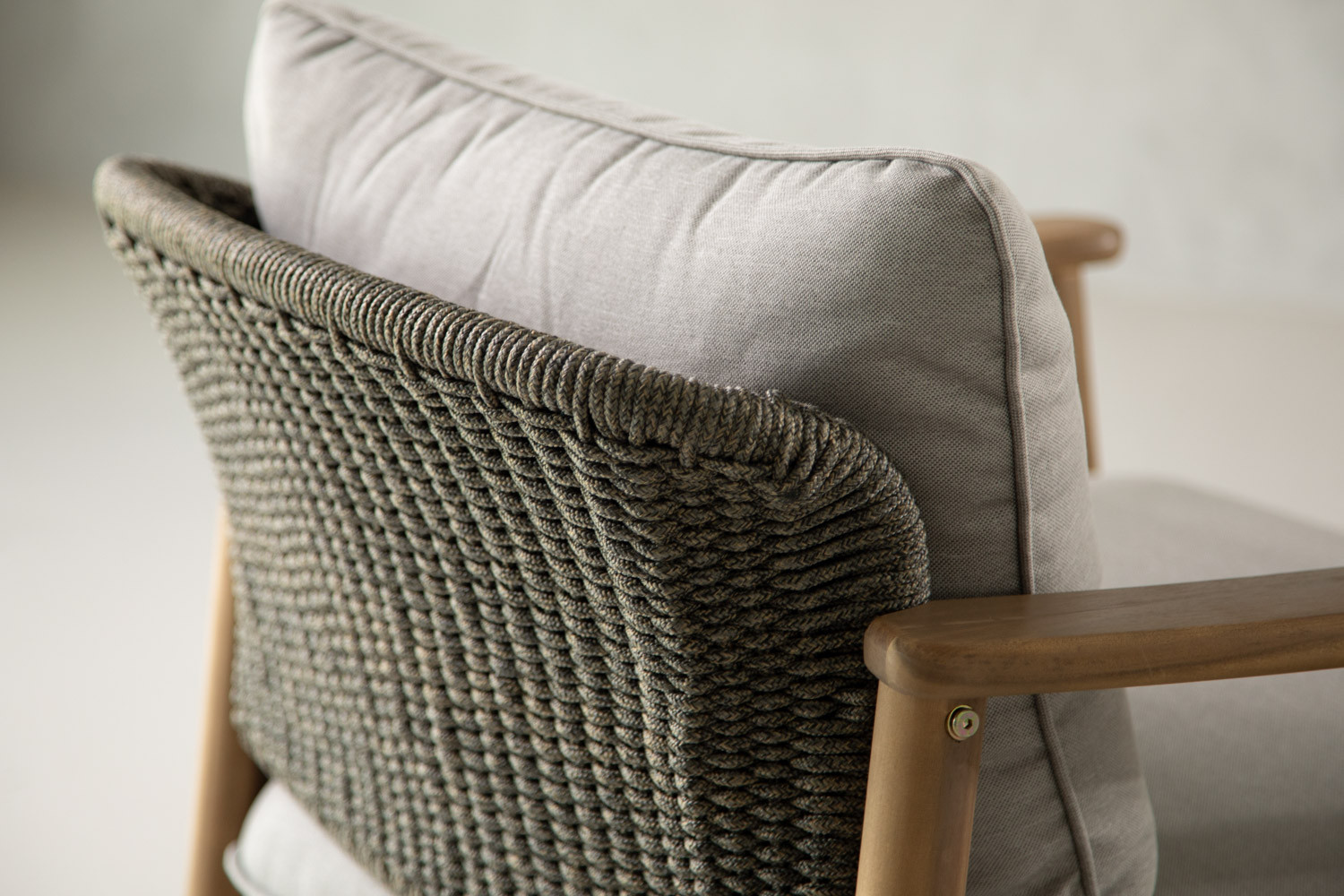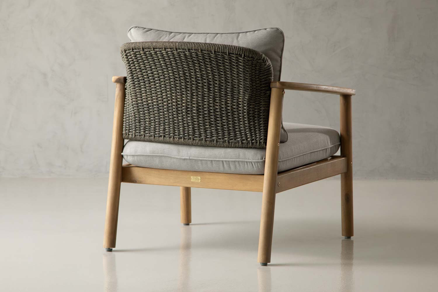 Made from Acacia wood, the frame is naturally robust for regular use, while the generously padded seat and back cushion invite you to settle in and stay awhile. The woven back detailing adds depth and a tactile contrast that feels curated. Style it as a pair on a veranda or anchor your reading nook in style.
